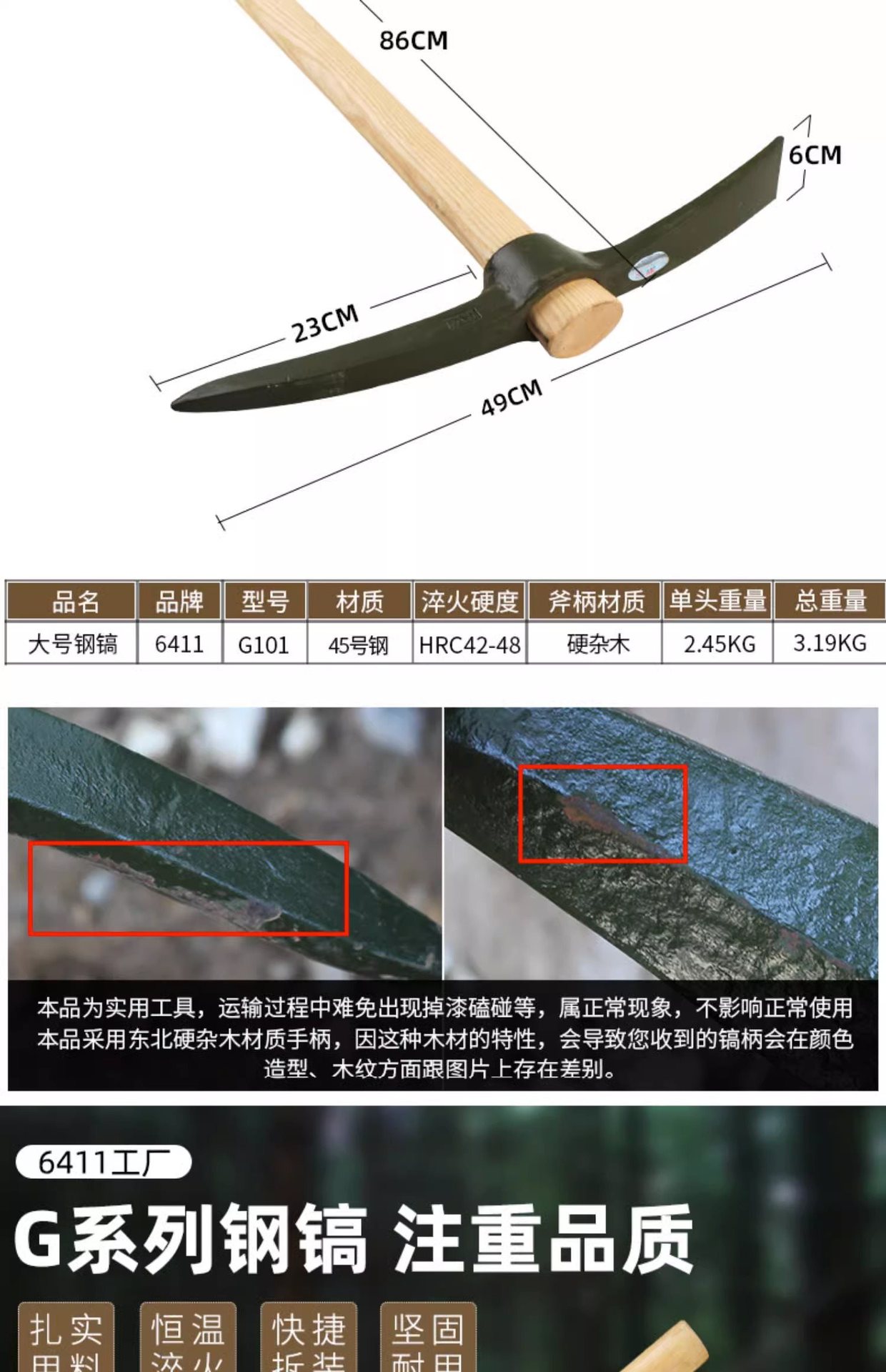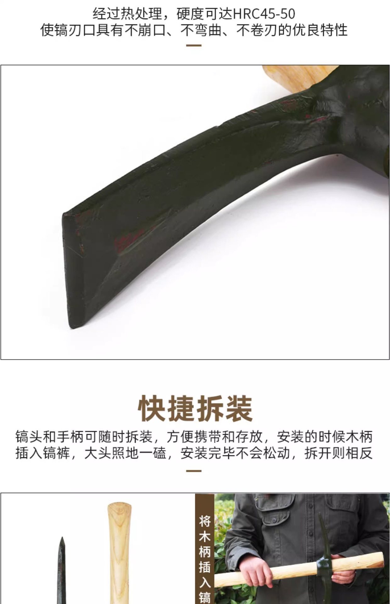 • 대형 군용 곡이 + 나무 손잡이