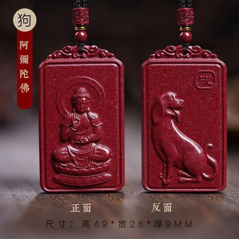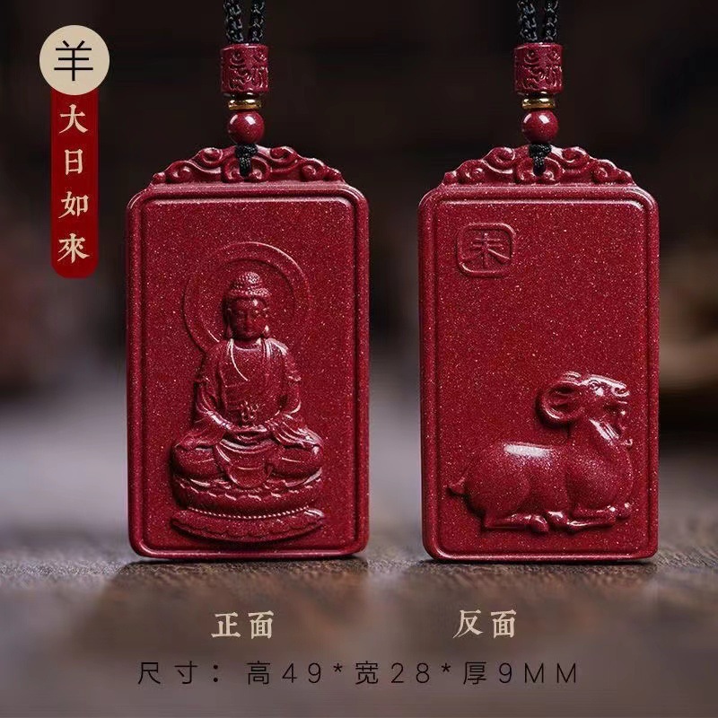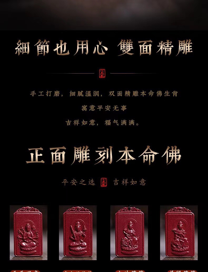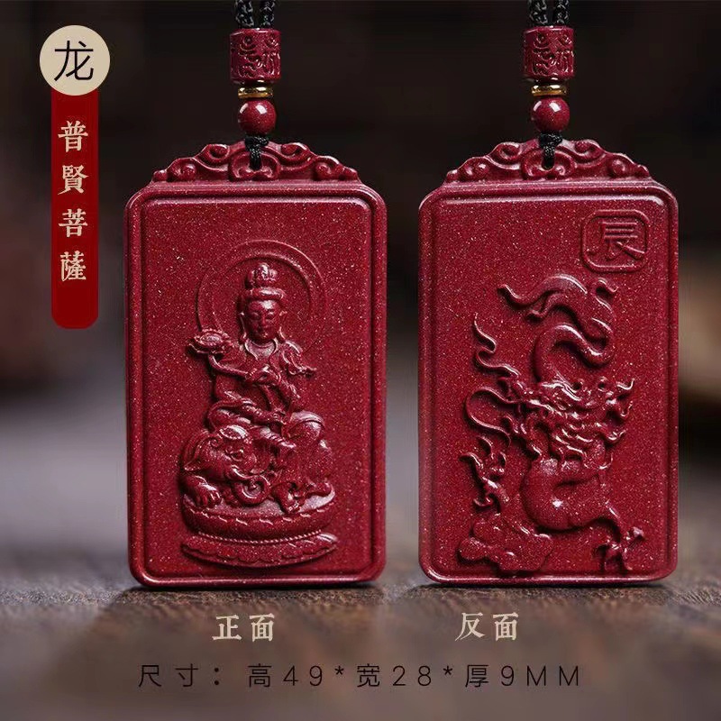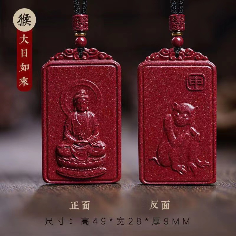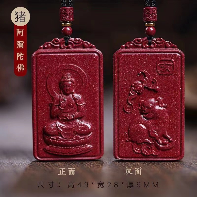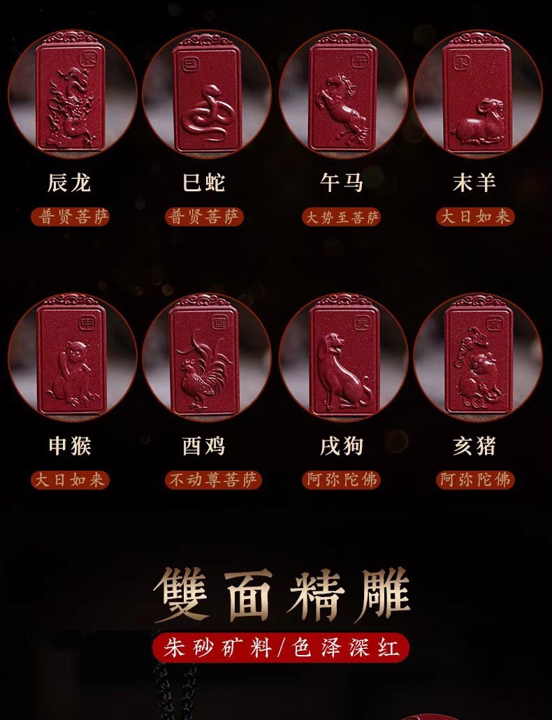 천연 원시 광석 Cinnabar 양면 벤밍포 스퀘어 펜던트 남성과 여성을위한 12 개의 조디악 목걸이 펜던트 펜던트스토어 가기