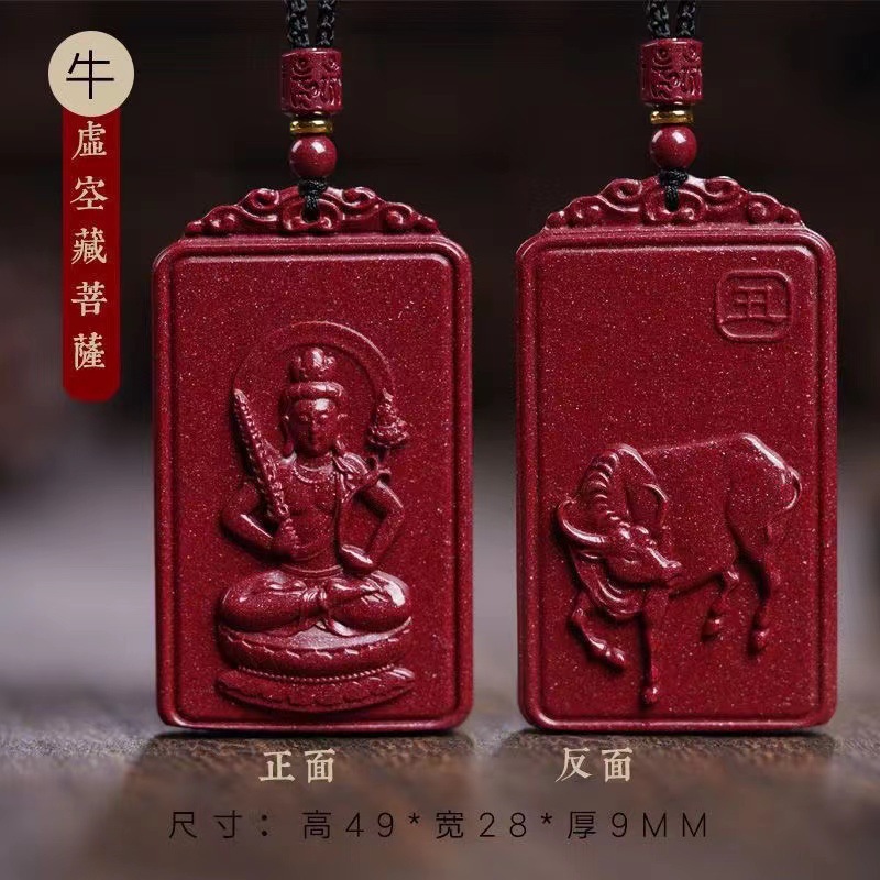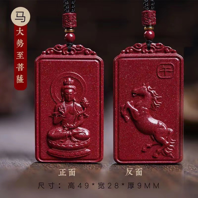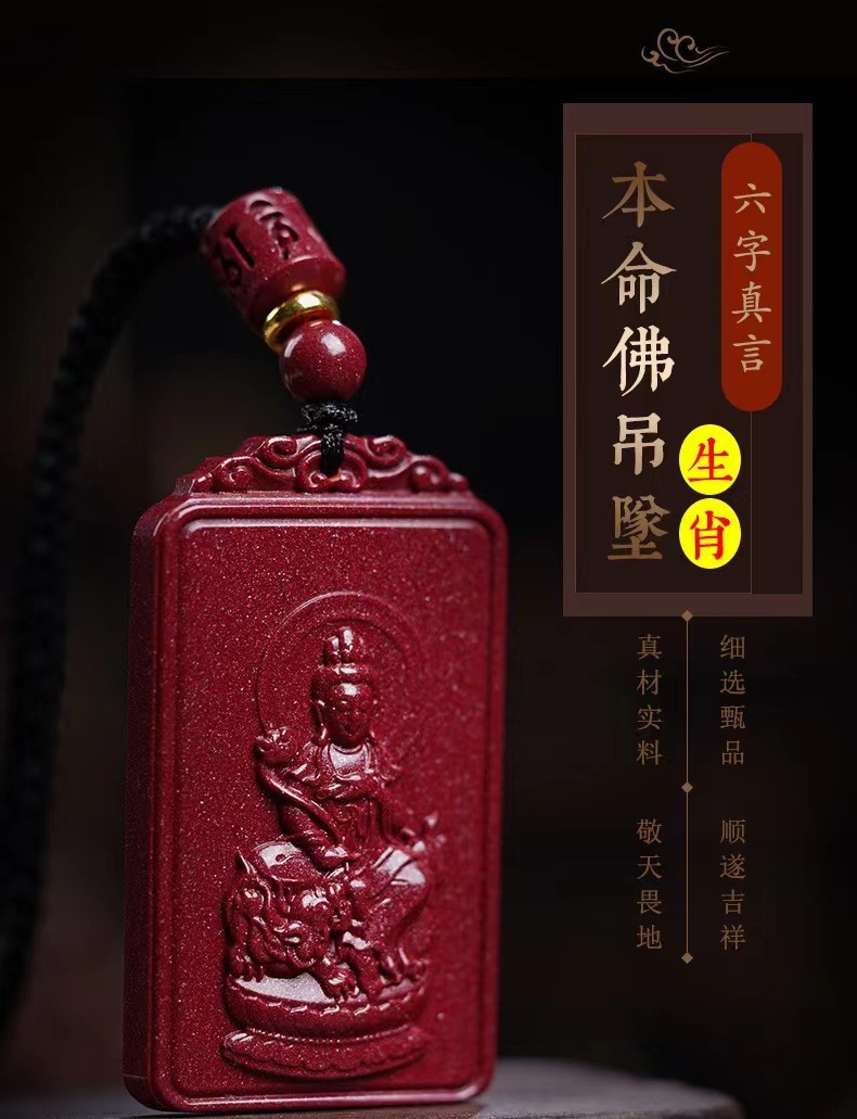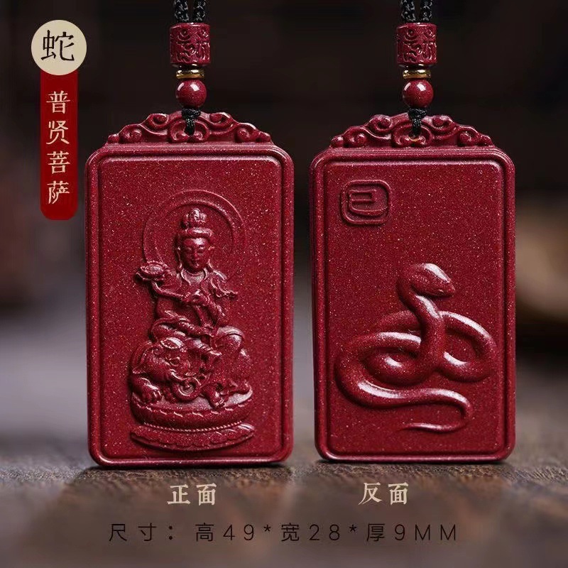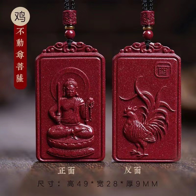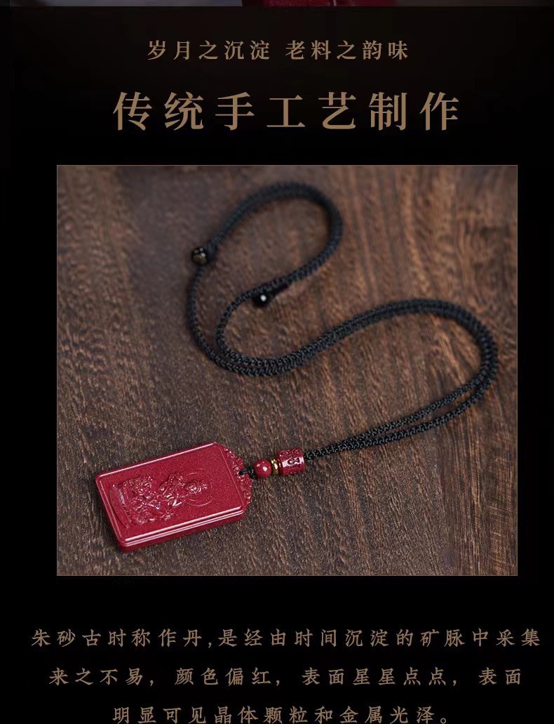 천연 원시 광석 Cinnabar 양면 벤밍포 스퀘어 펜던트 남성과 여성을위한 12 개의 조디악 목걸이 펜던트 펜던트스토어 가기