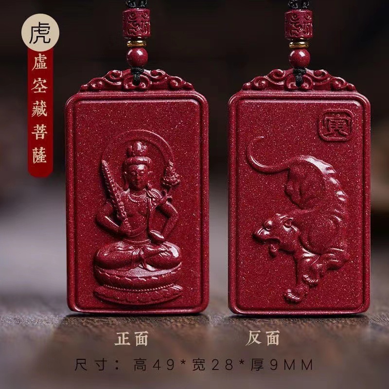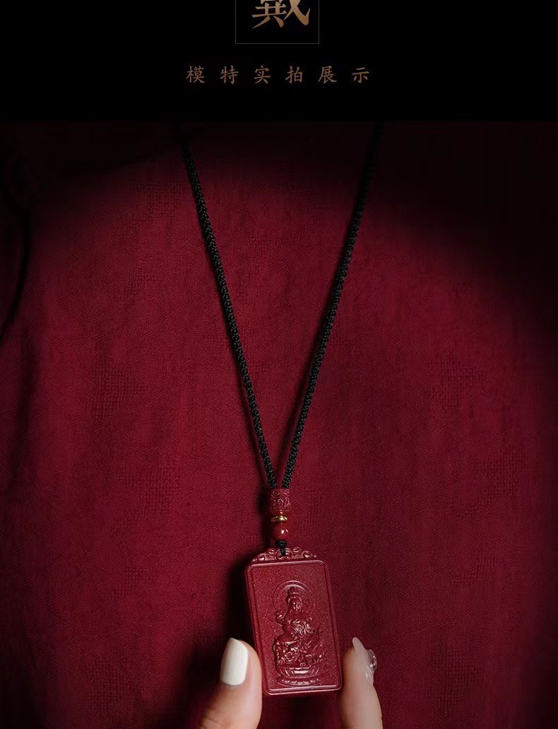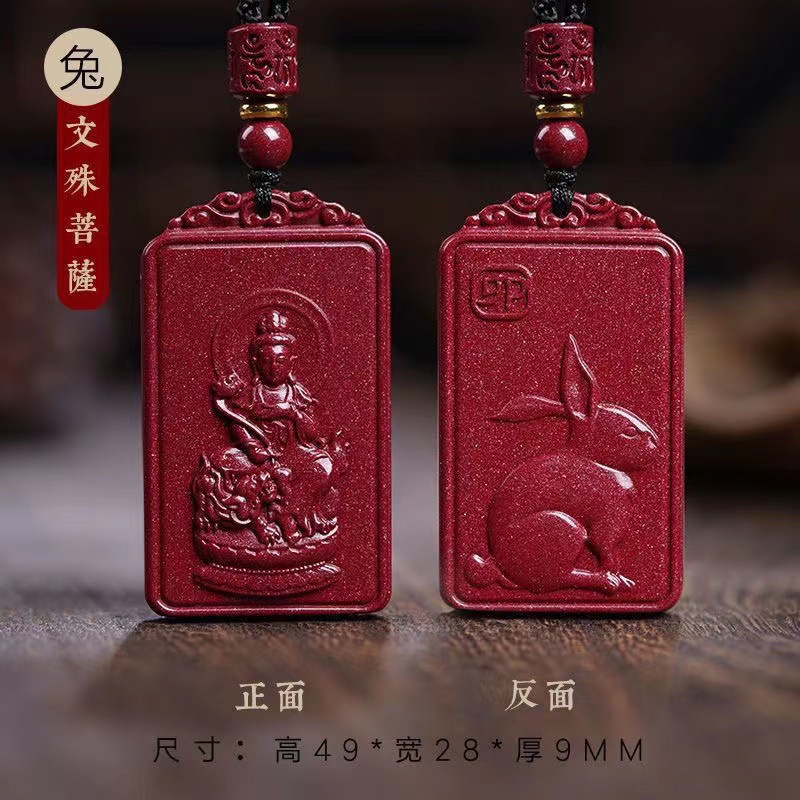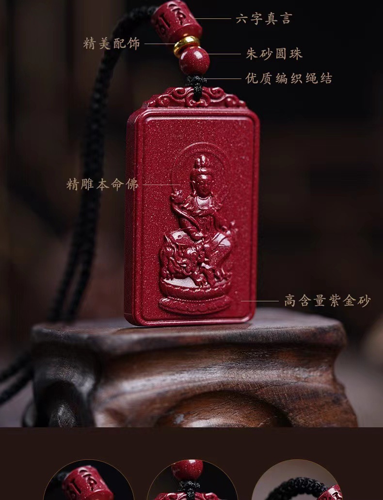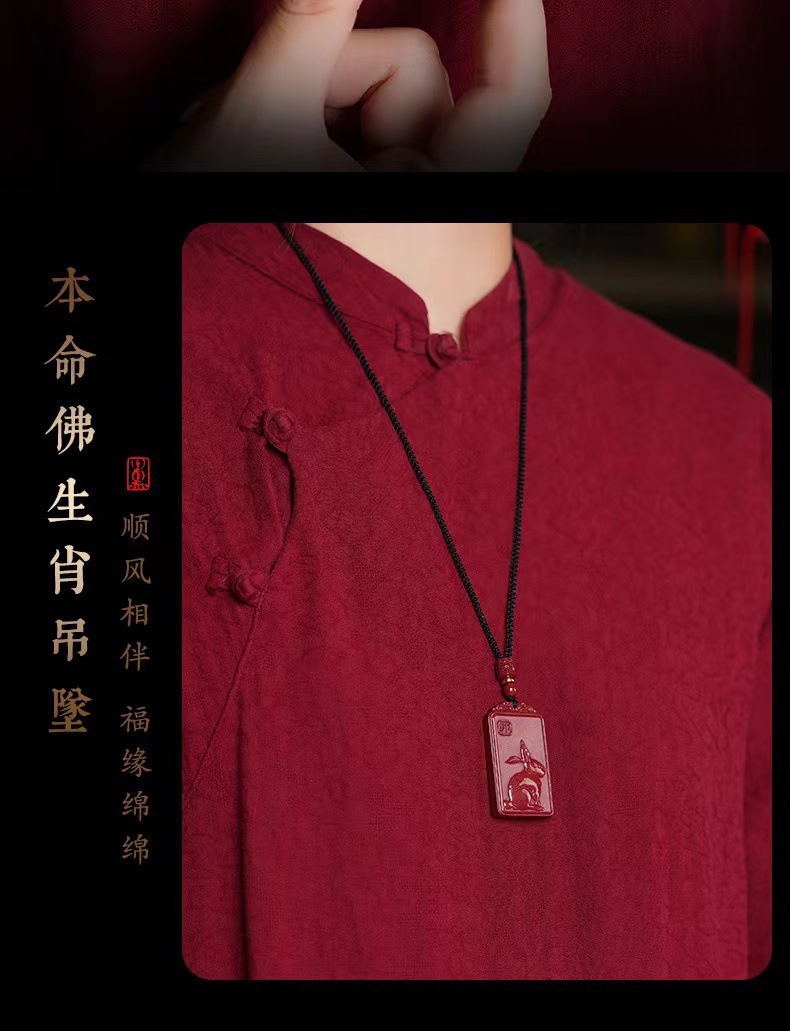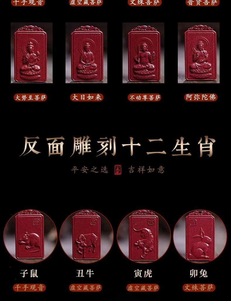 천연 원시 광석 Cinnabar 양면 벤밍포 스퀘어 펜던트 남성과 여성을위한 12 개의 조디악 목걸이 펜던트 펜던트스토어 가기