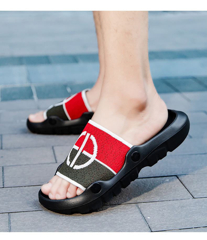 2025 남성 샌들 유럽과 미국 슬리퍼 여름 겉옷 다목적 문자 두꺼운 밑창 남성 슬리퍼 비치 신발스토어 가기