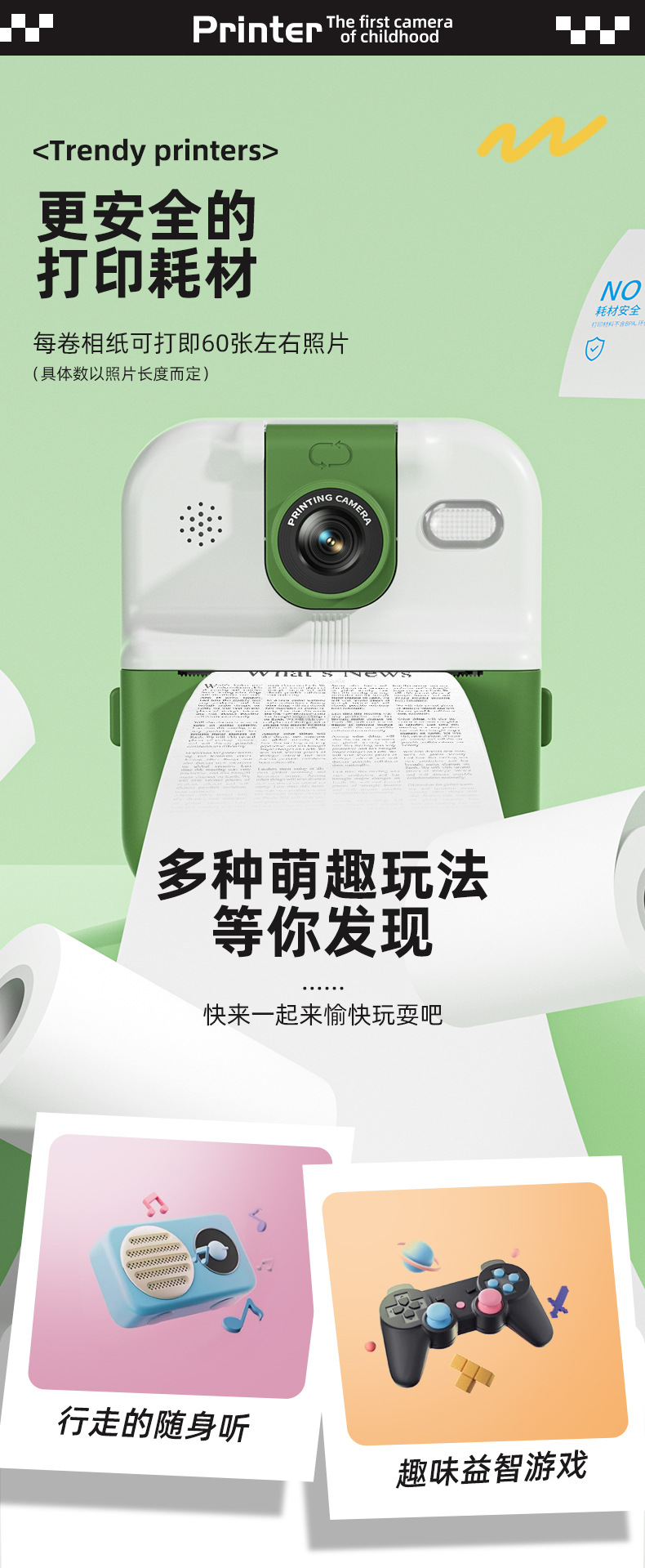새로운 어린이 카메라는 사진을 찍고 사진 소년 소녀 아기에서 직접 높은 픽셀 열 용지를 인쇄 할 수 있습니다.스토어 가기