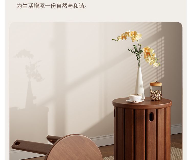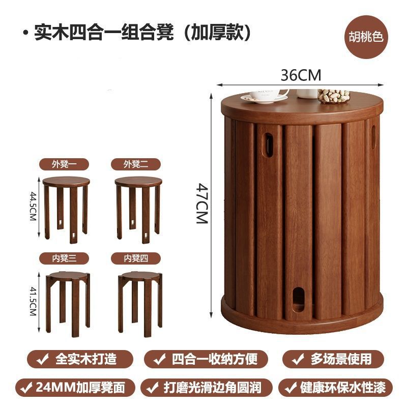 • 쇼트 월넛 컬러 - 쌓을 수 있는 원형 스툴 [1샷 4샷]