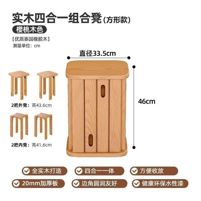 • 천연 나무 색상 - 쌓인 조합 사각형 스툴