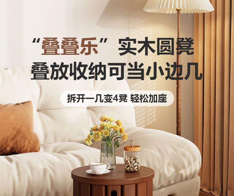 • 벚나무 색상 - 쌓을 수 있는 원형 스툴 [1샷 4샷]