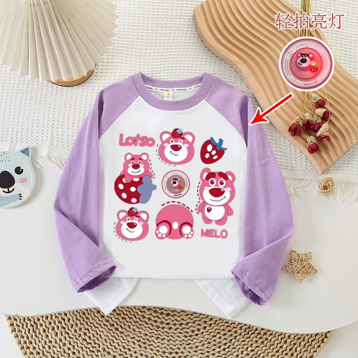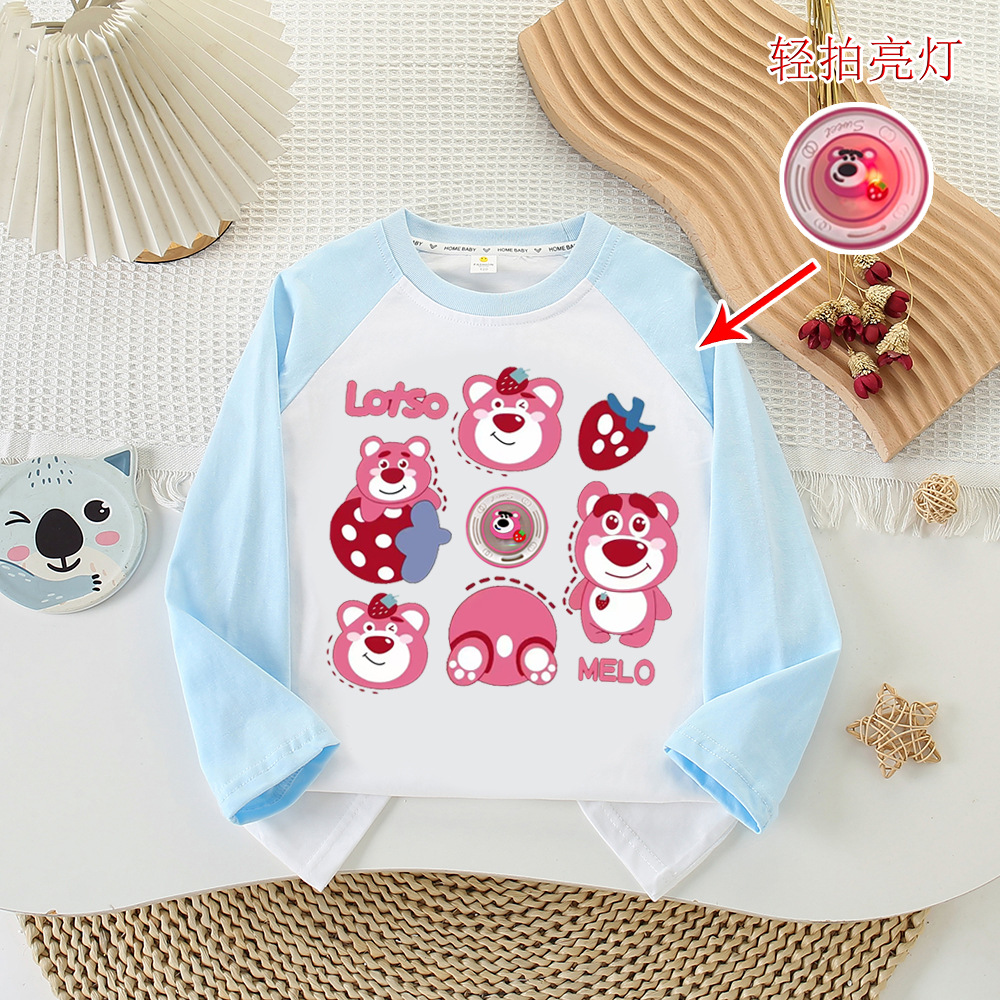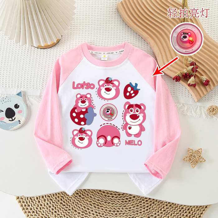 딸기 곰 소녀 코튼 긴팔 티셔츠 봄 착용 봄 가을 어린이 착용 소녀 아동베이스 셔츠 봄 최고 트렌디