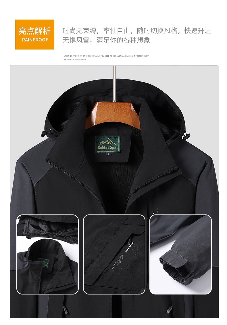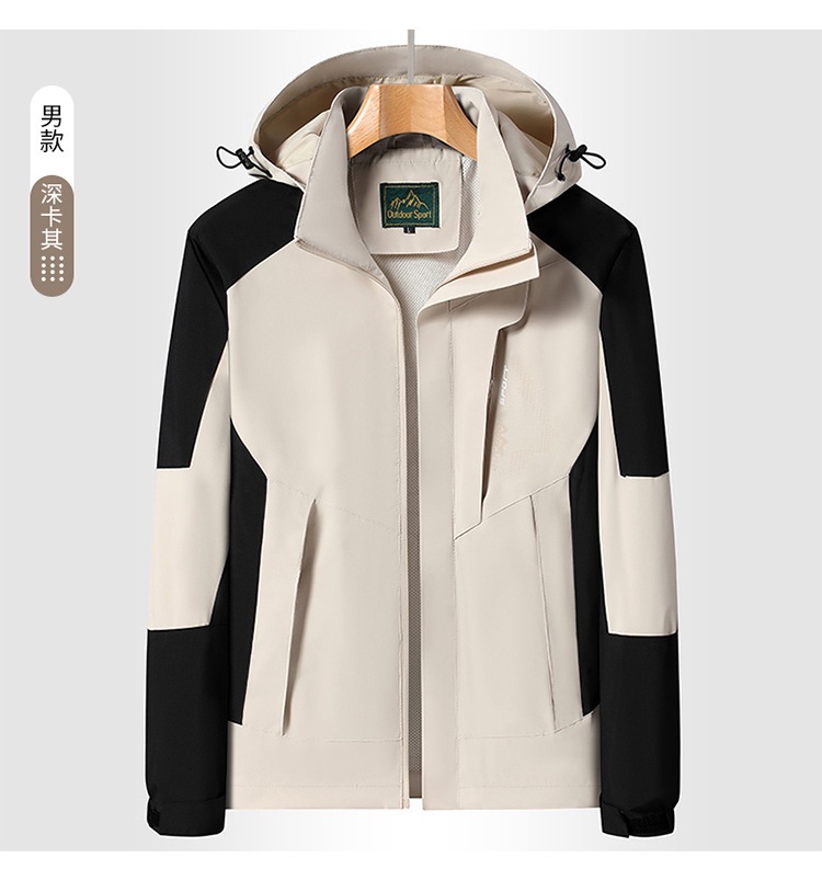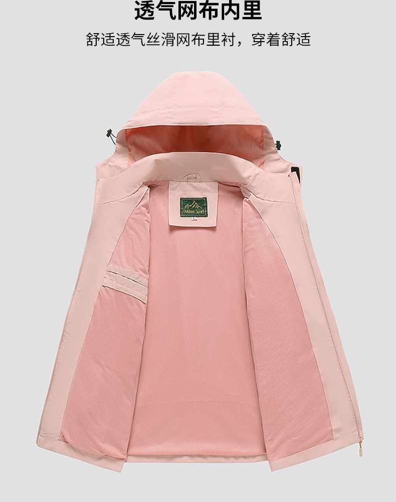 봄과 가을 충전 옷 싱글 레이어 얇은 스포츠 후드 자켓 연인 방풍 재킷 야외 사이클링 등산 세트