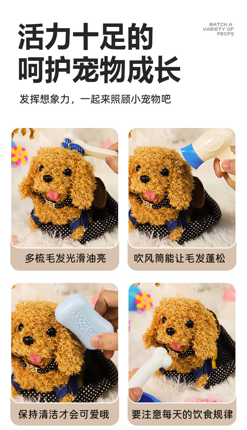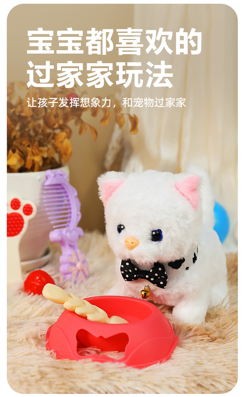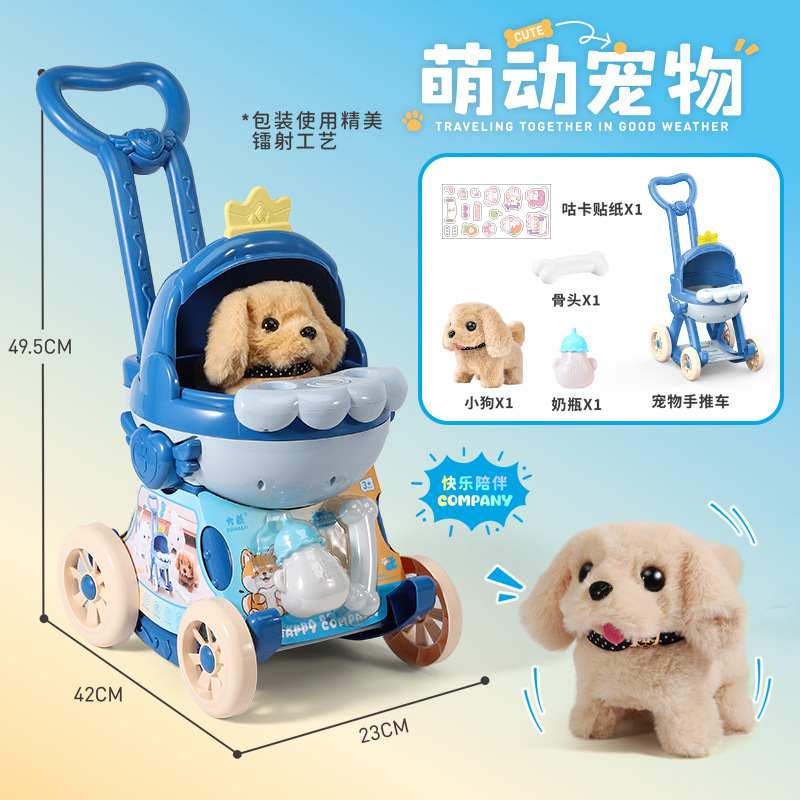 국경 간 애완 동물 트롤리 고양이 개 어린이 놀이 집 장난감은 시뮬레이션 애완 동물 전기 인형이라고 부를 것입니다