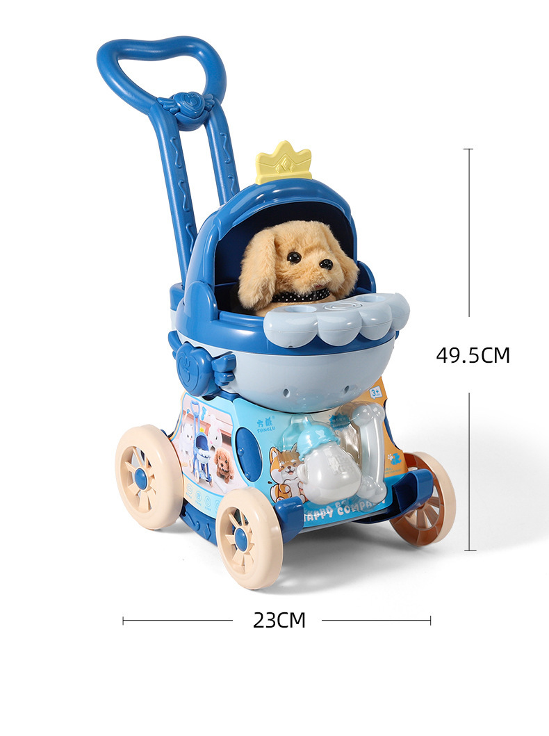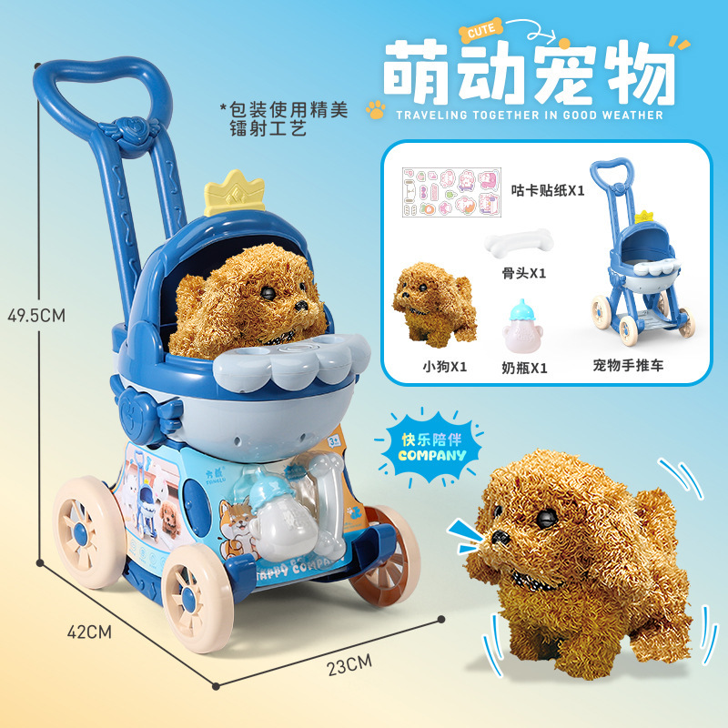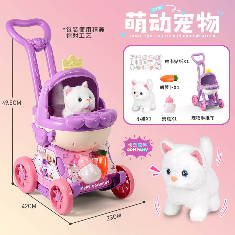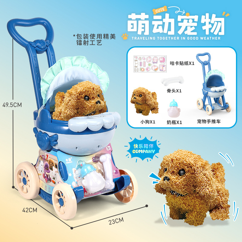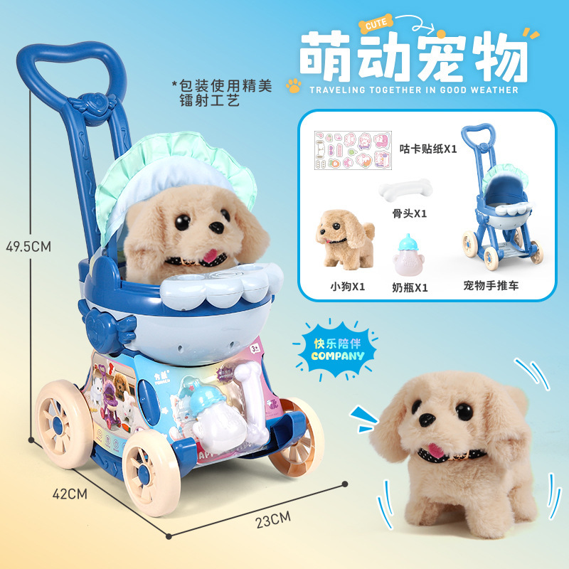 국경 간 애완 동물 트롤리 고양이 개 어린이 놀이 집 장난감은 시뮬레이션 애완 동물 전기 인형이라고 부를 것입니다스토어 가기