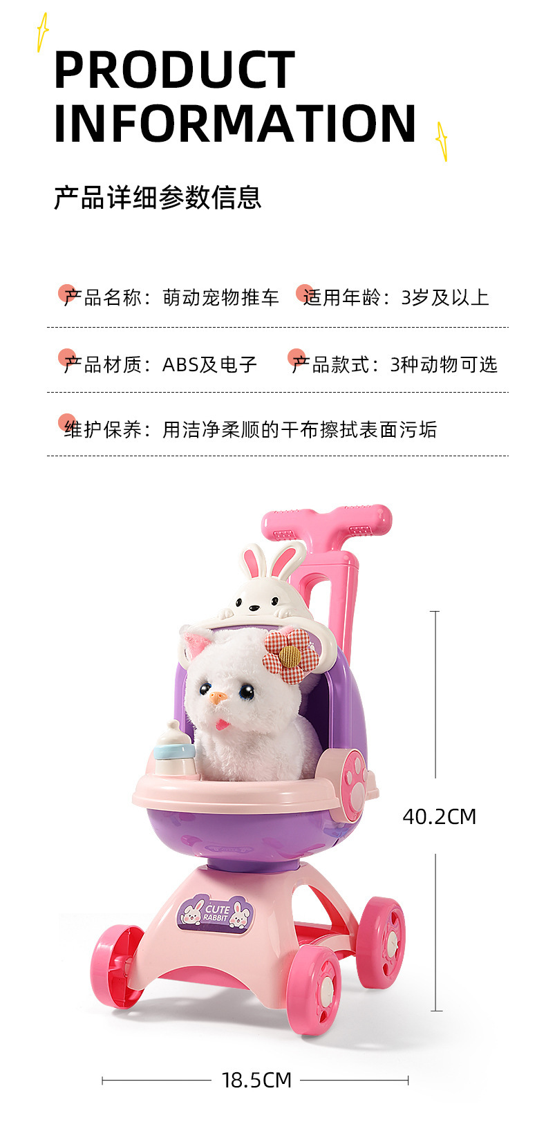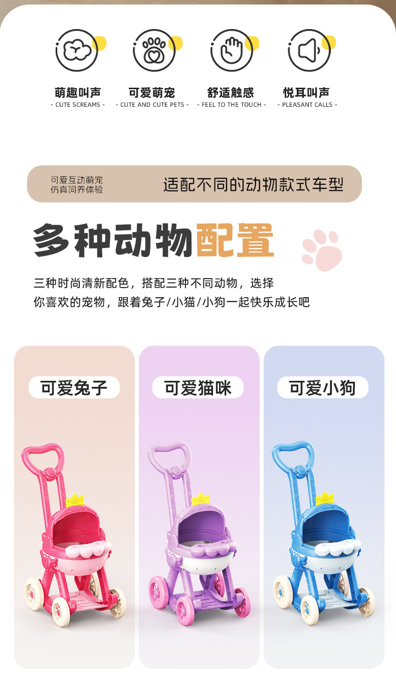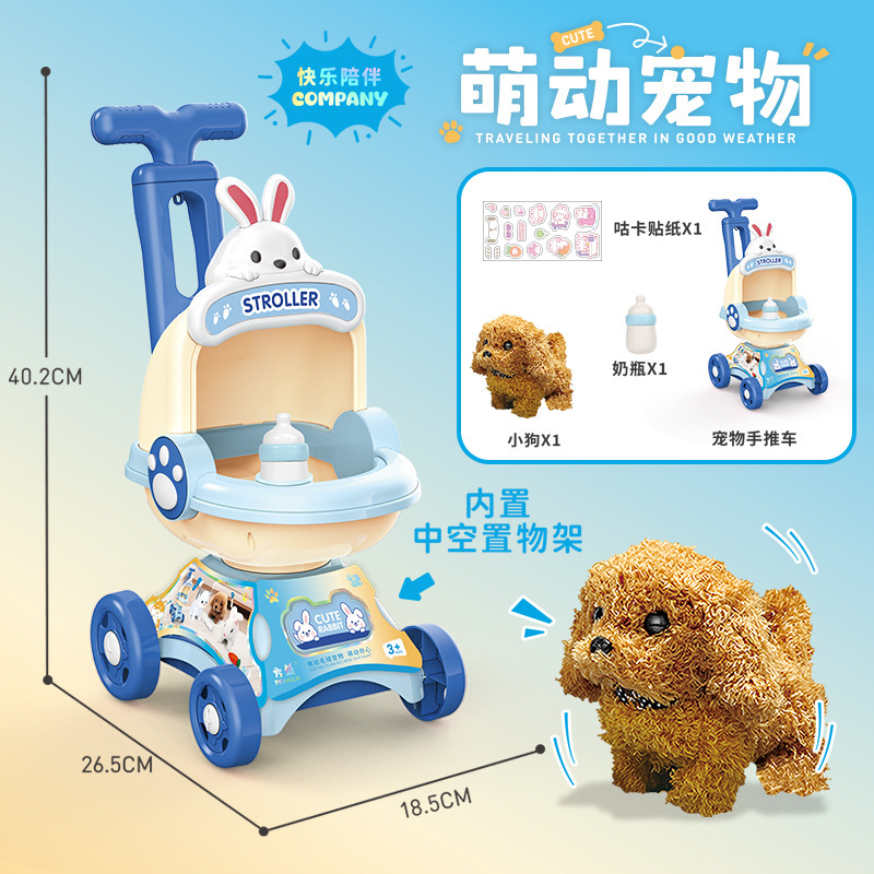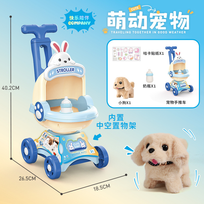 국경 간 애완 동물 트롤리 고양이 개 어린이 놀이 집 장난감은 시뮬레이션 애완 동물 전기 인형이라고 부를 것입니다스토어 가기