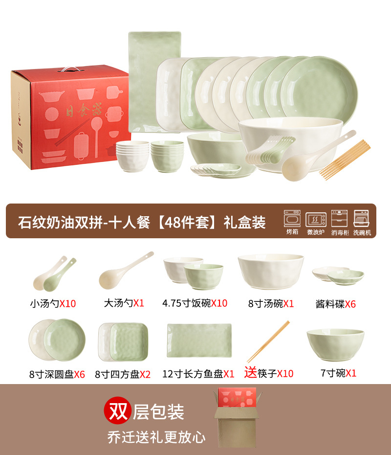 • 스톤 패턴 크림 더블 조합 - 10인 식사 [48개입] 선물 상자