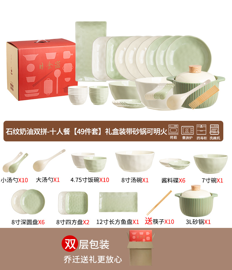 • 스톤 패턴 크림 더블 조합 - 10인 식사 [49개] 캐서롤 선물 상자 포함