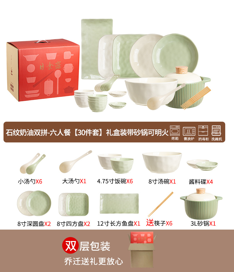 • 스톤 패턴 크림 더블 조합 - 캐서롤 포함 6인 식사 [30개]