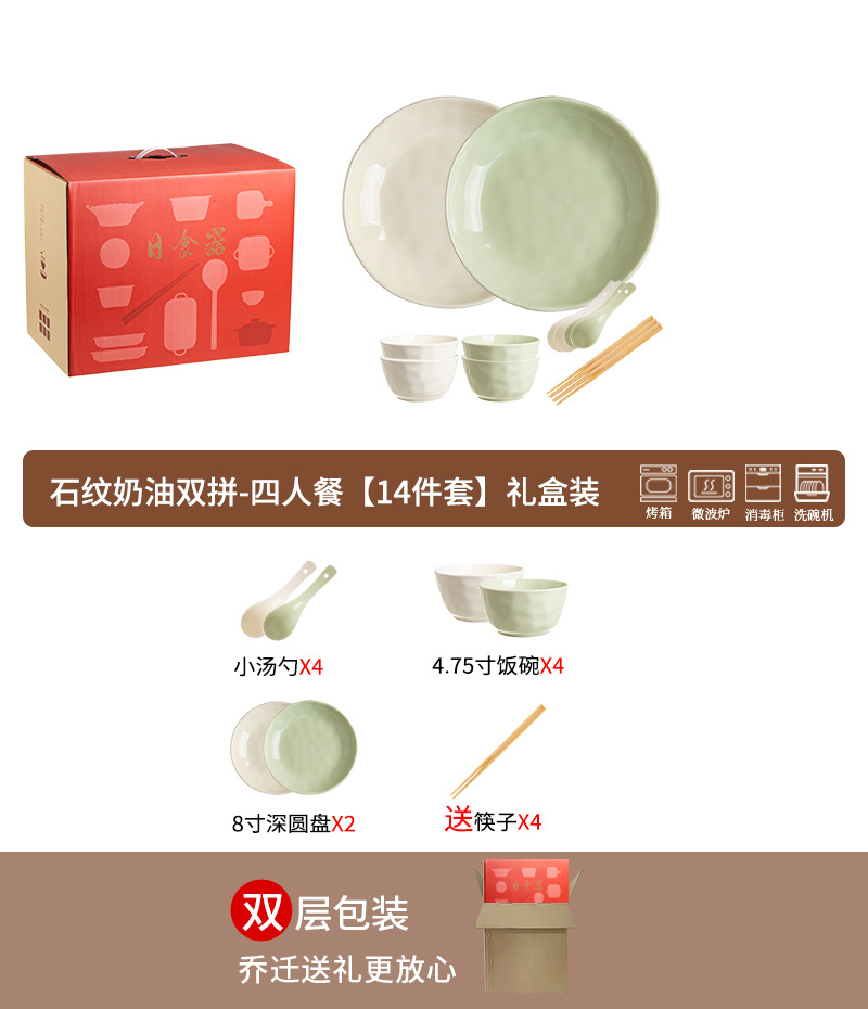 • 스톤 패턴 크림 더블 조합 - 4인용 실용 식사 패키지 [14개입]