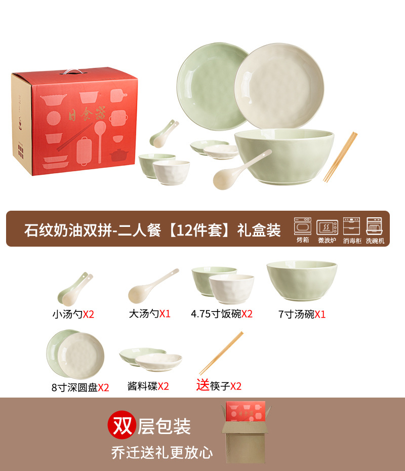 • 스톤 패턴 크림 더블 조합 - 2인용 식사 [13개] 캐서롤 선물 상자 포함