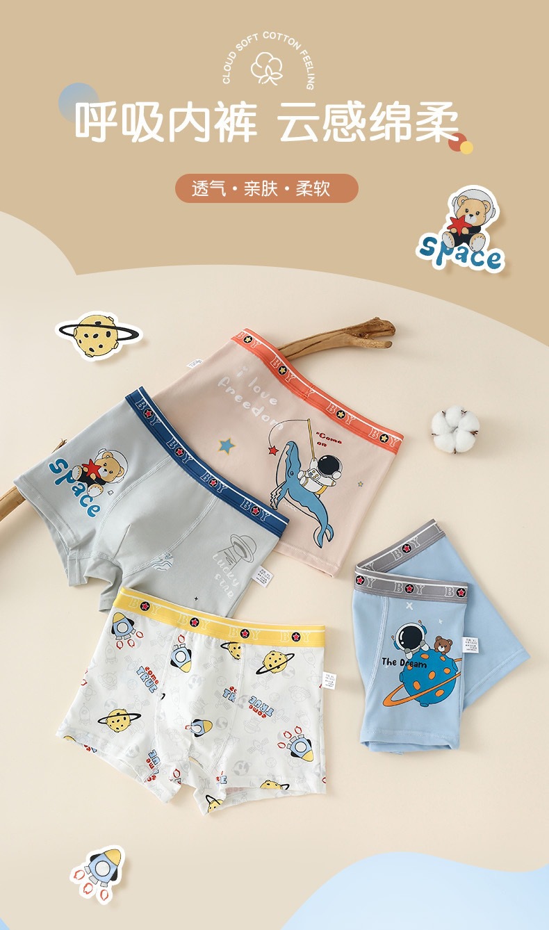 어린이 속옷 소년의 순면 복서 만화 중년 소년의 아기 학생 반바지 4 코너 편안한 반바지스토어 가기