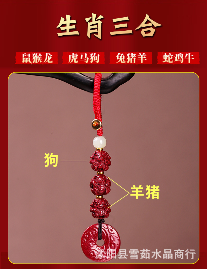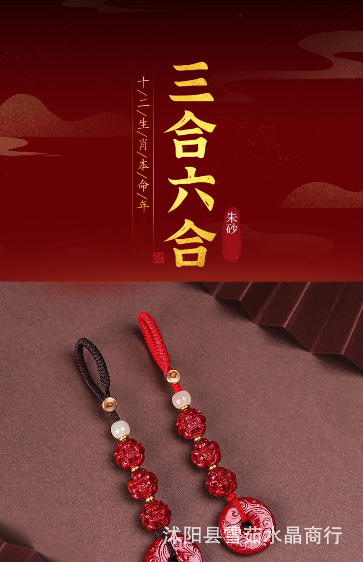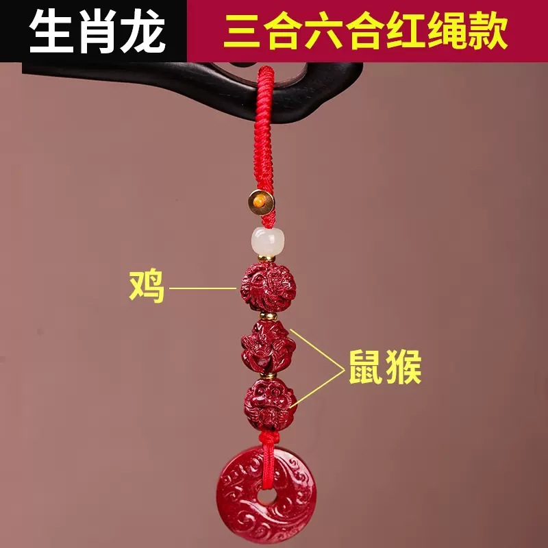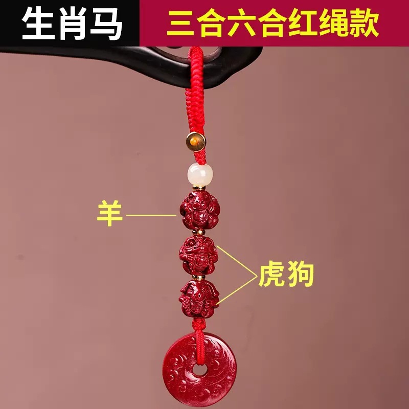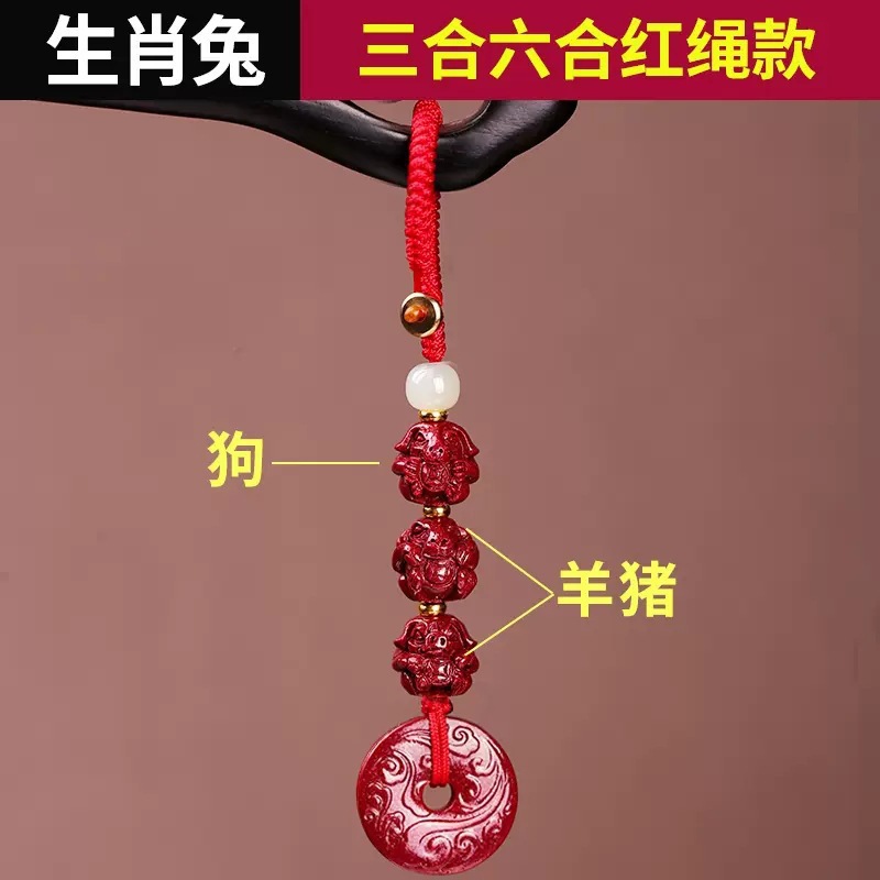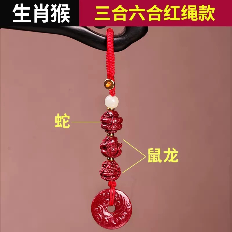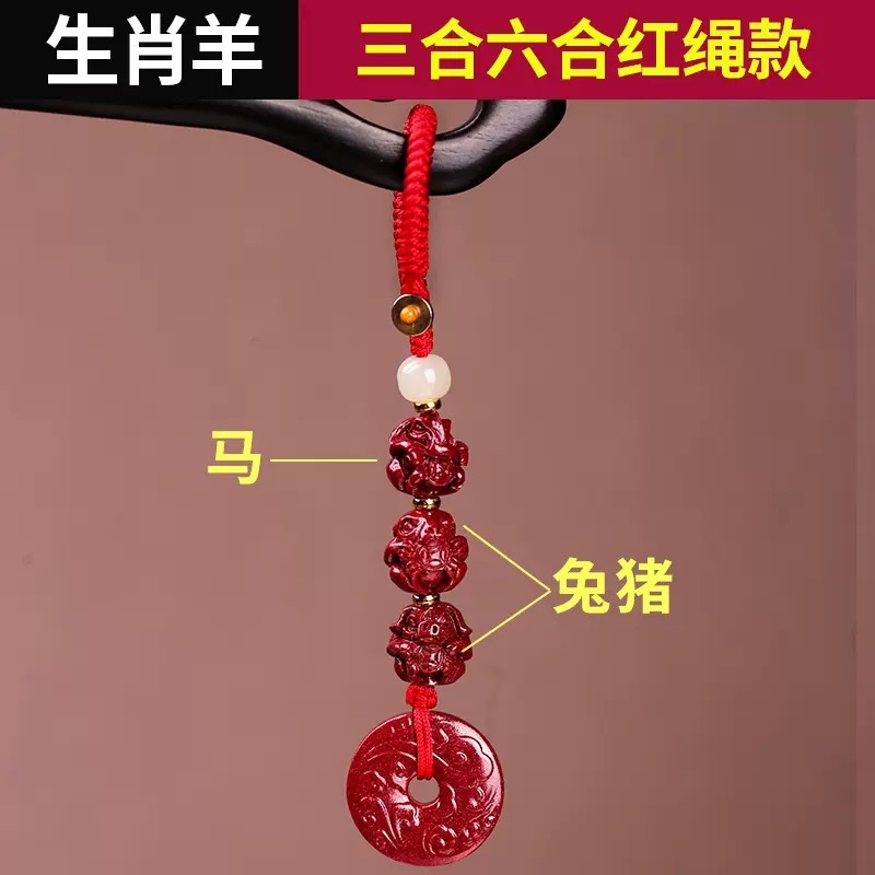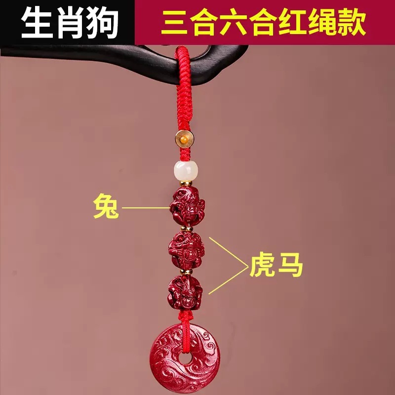• 양 삼합 육합 붉은 밧줄 열쇠고리