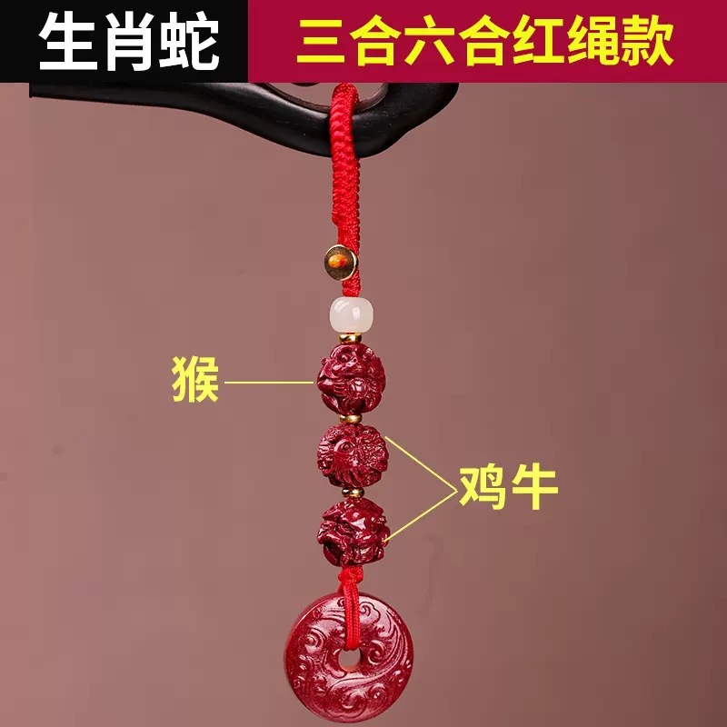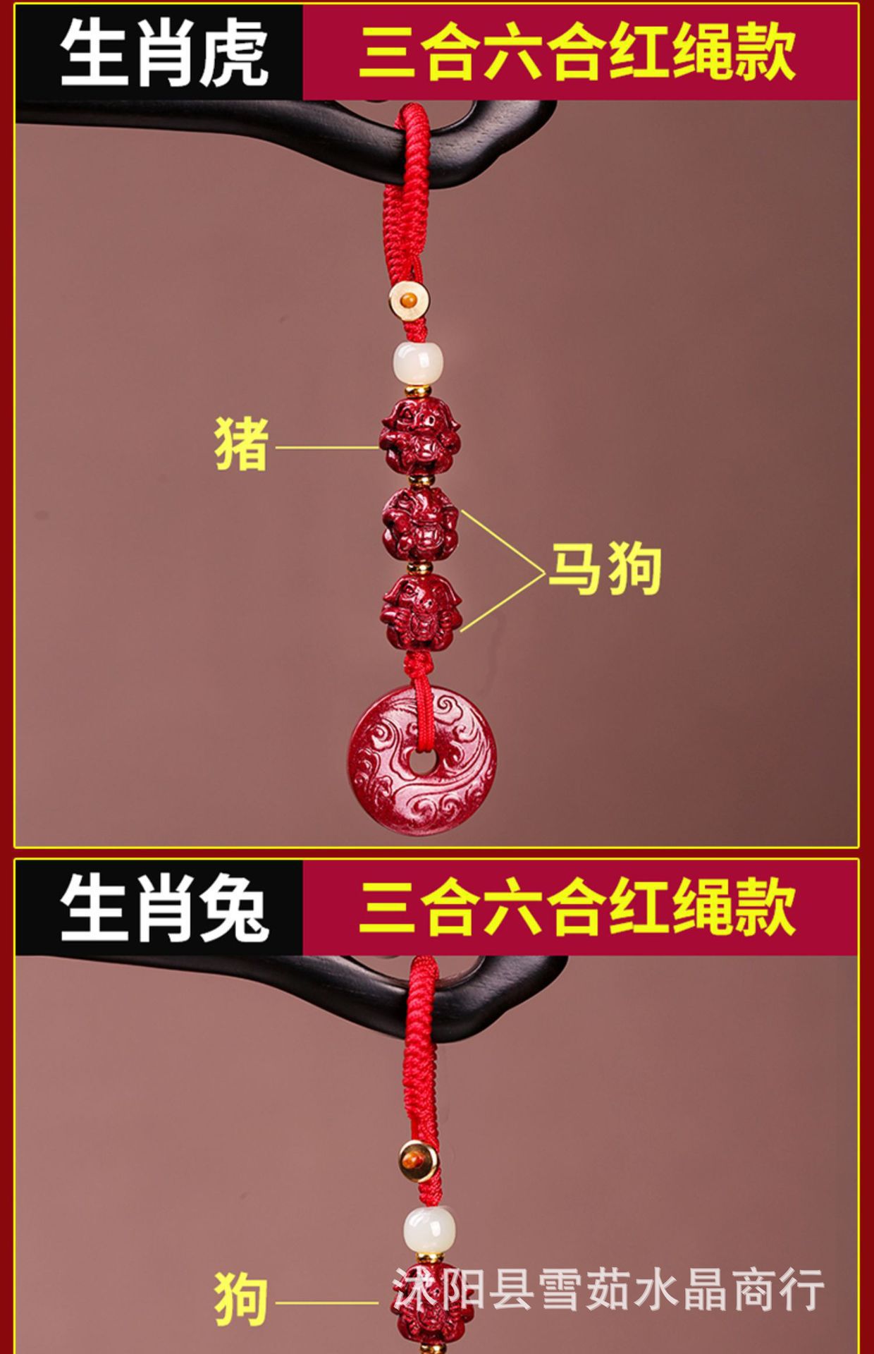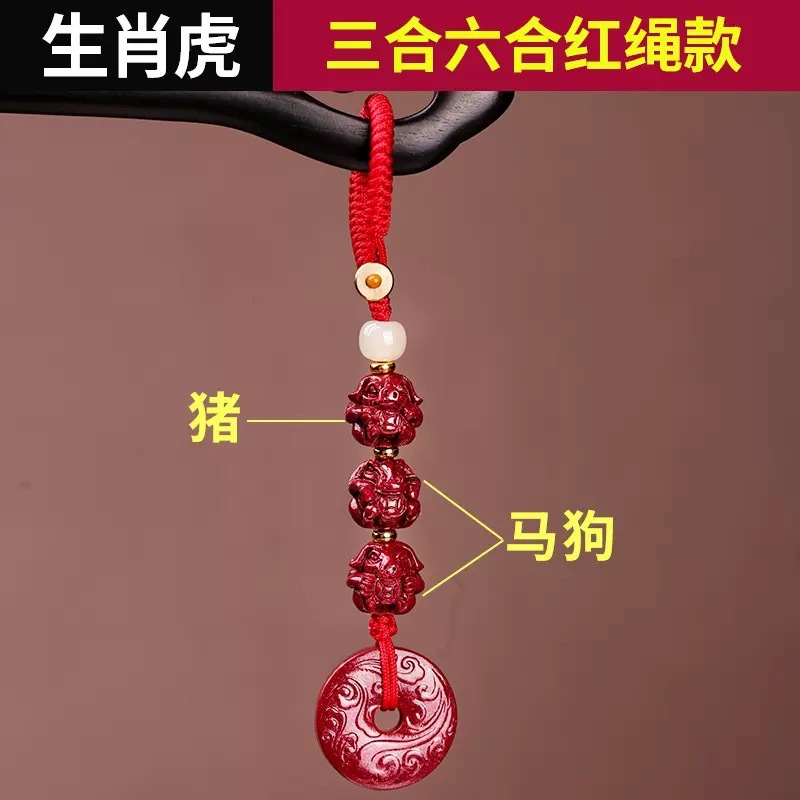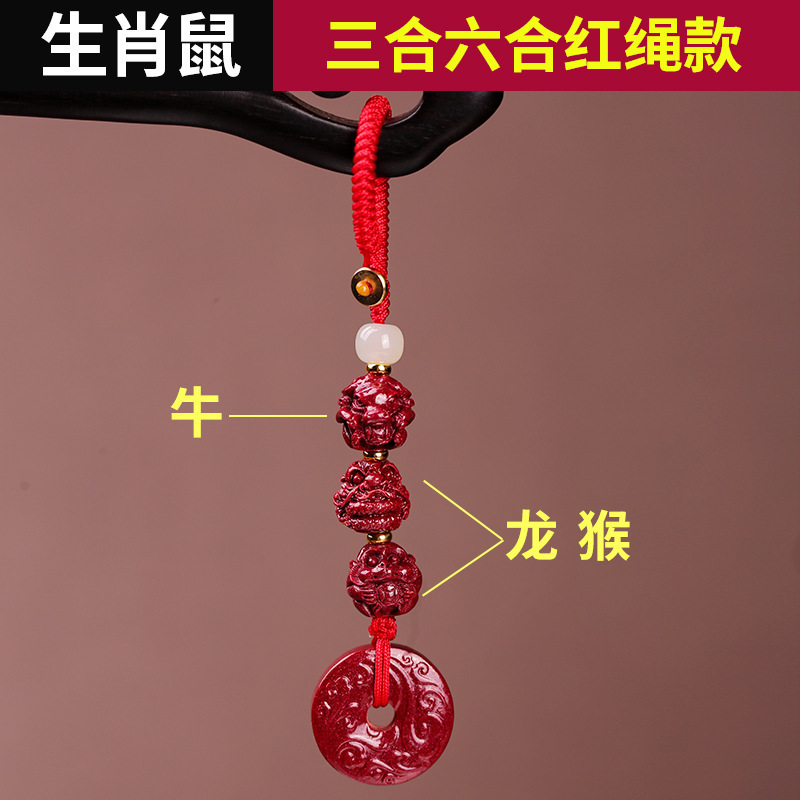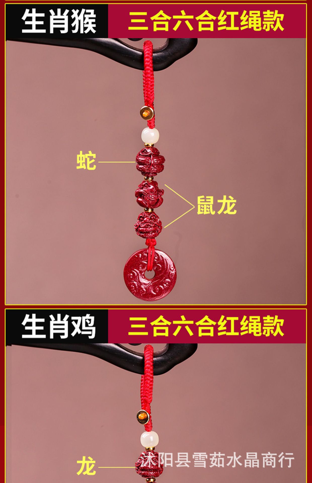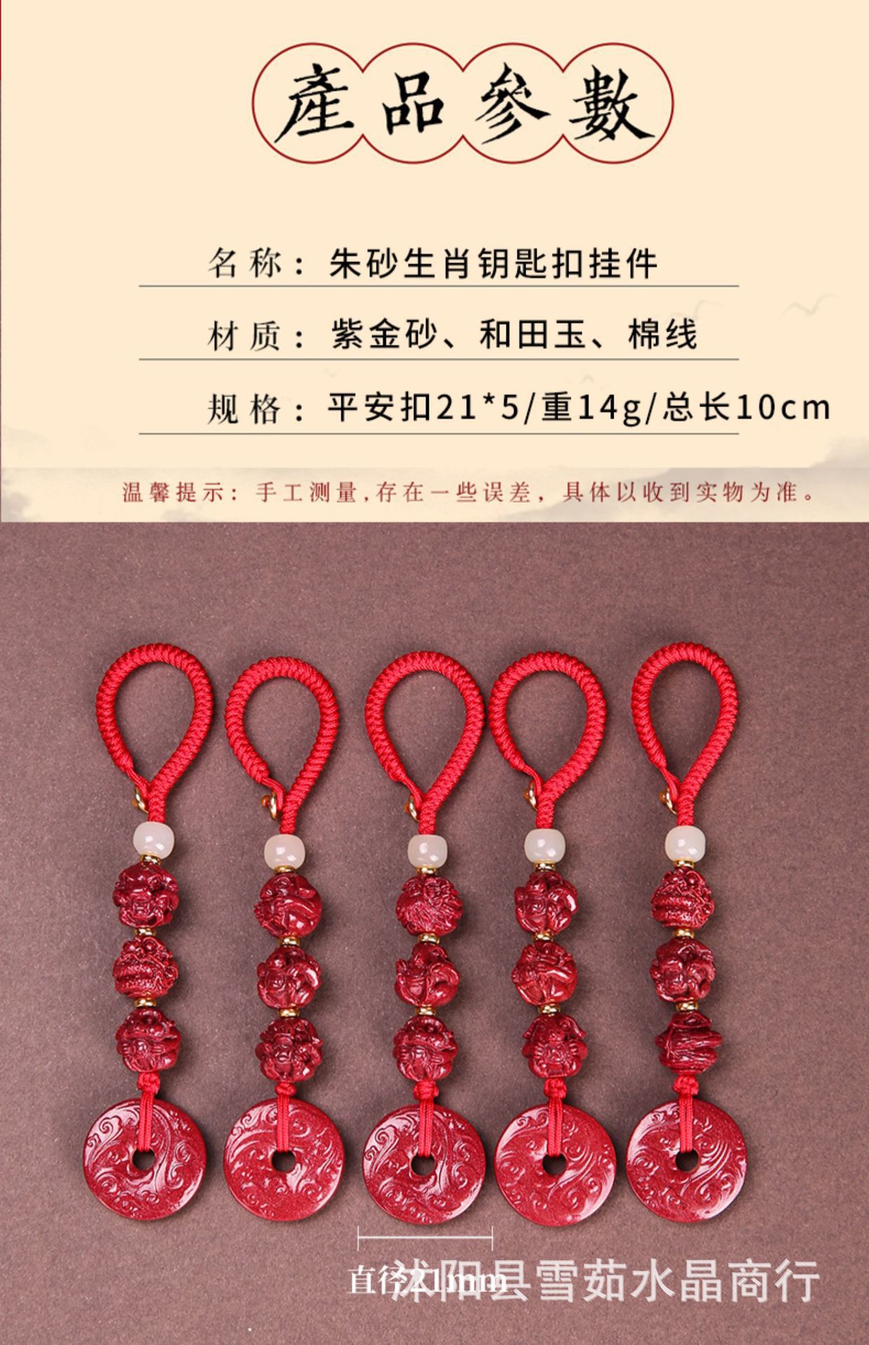 • 양 삼합 육합 붉은 밧줄 열쇠고리