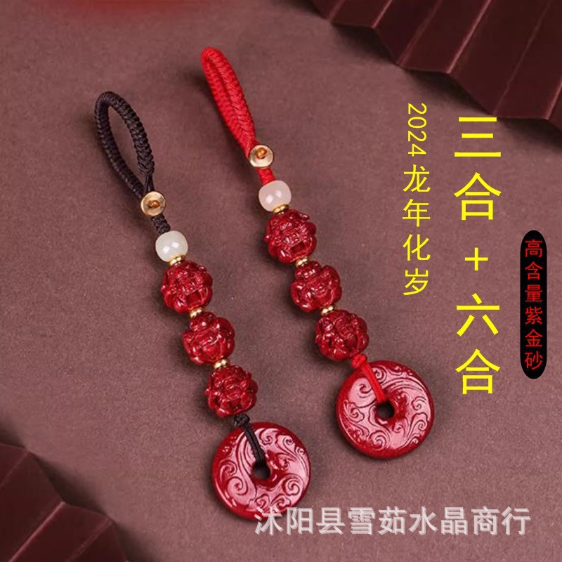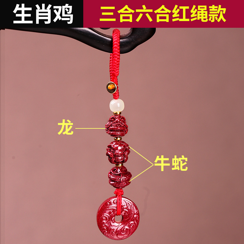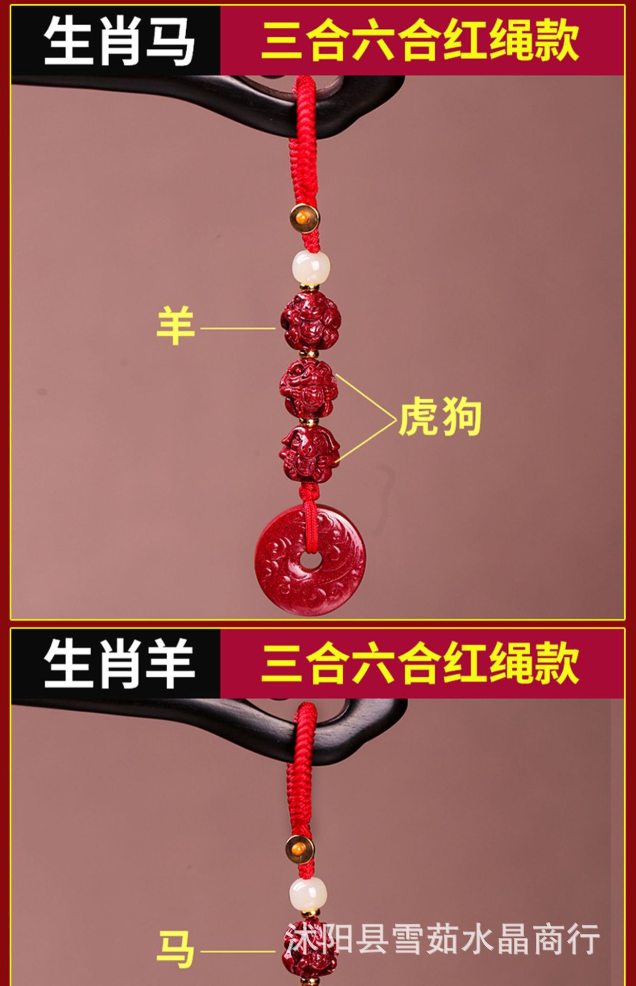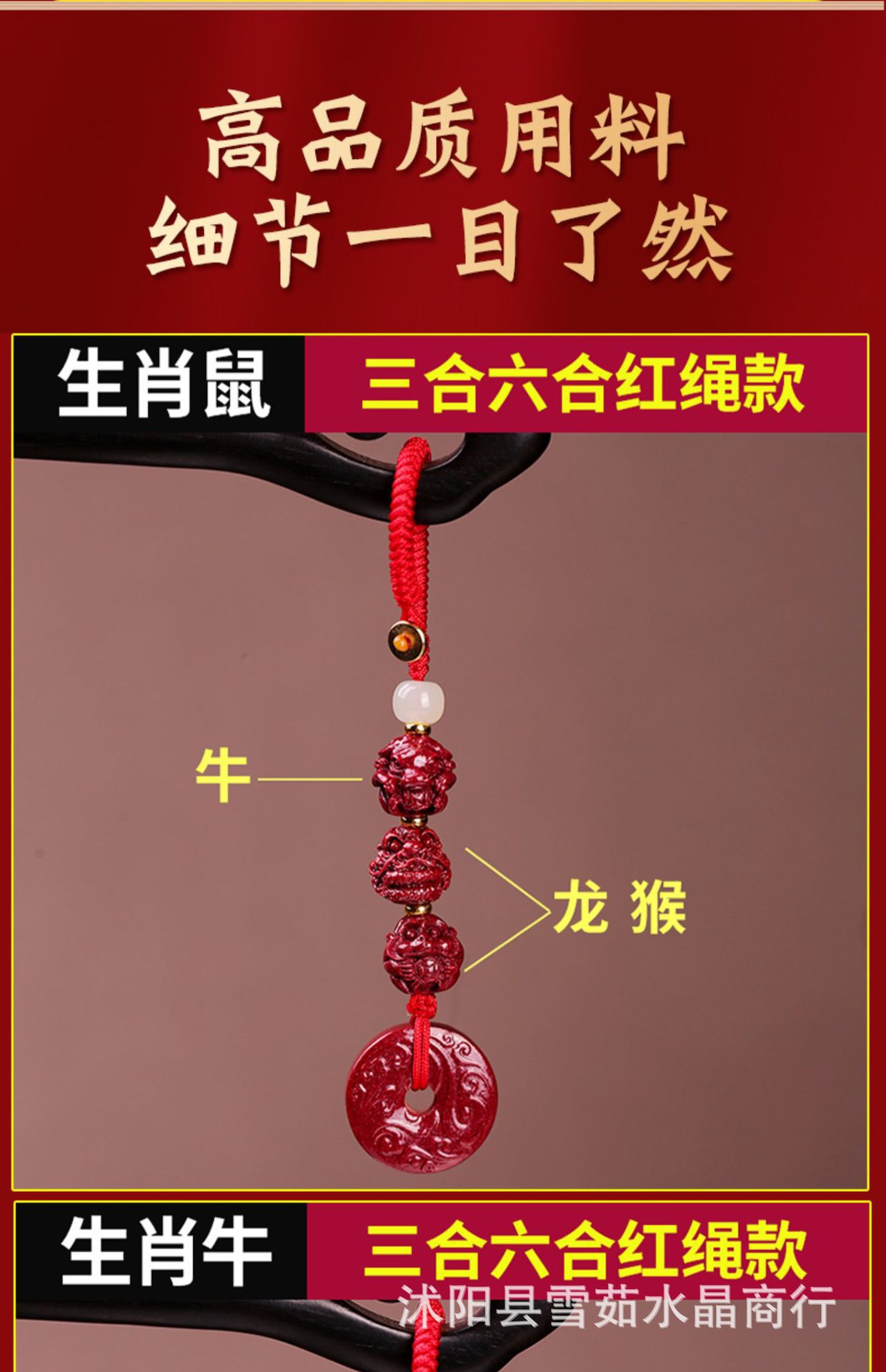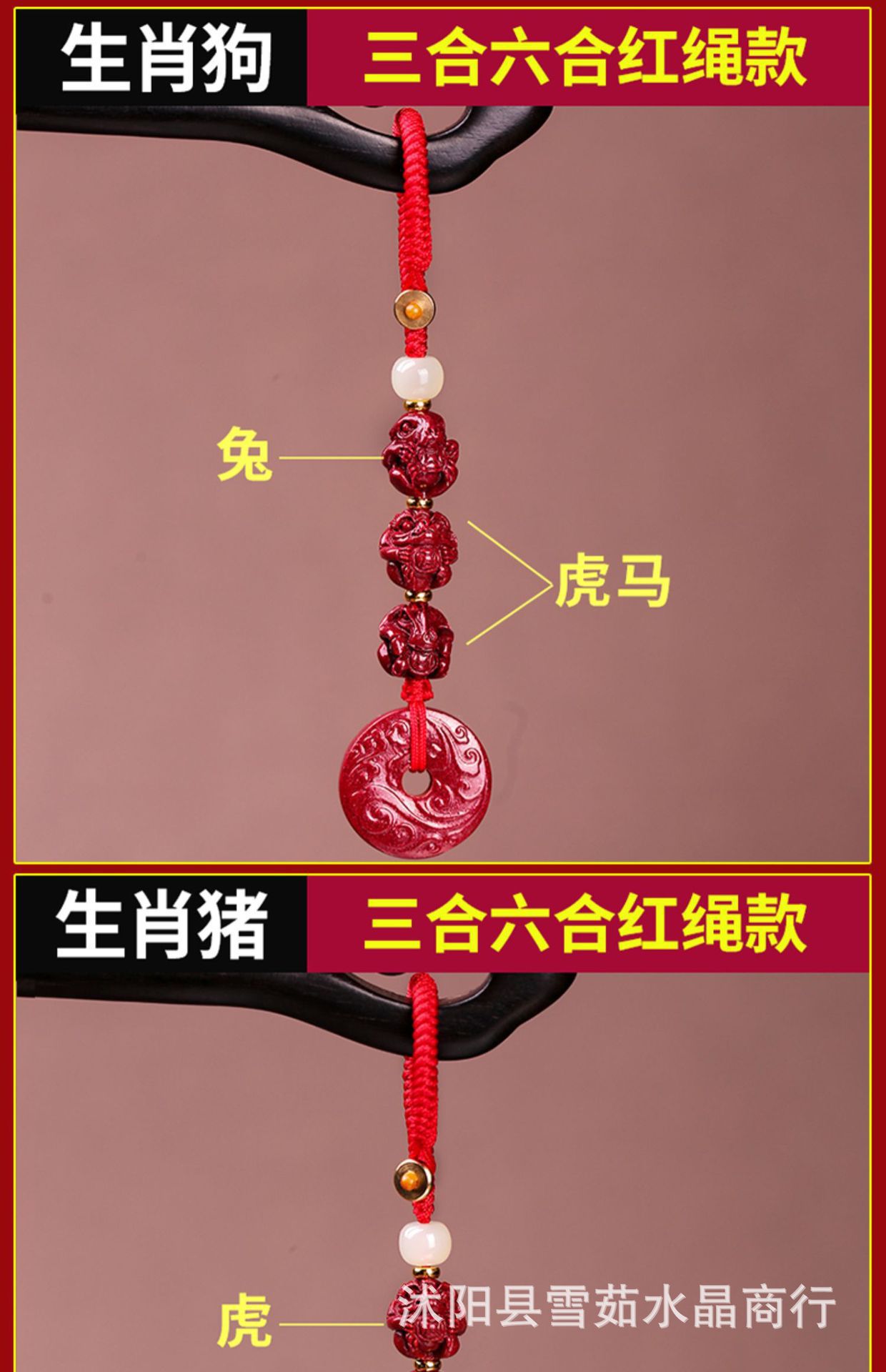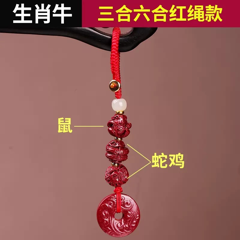 • 양 삼합 육합 붉은 밧줄 열쇠고리