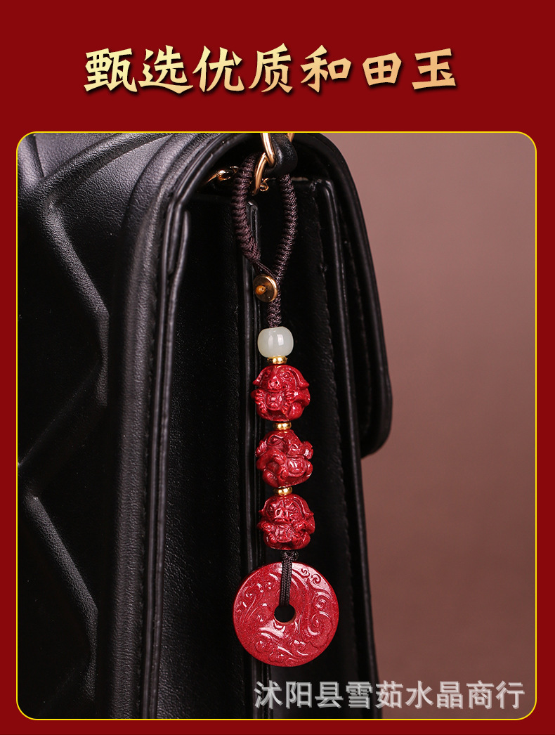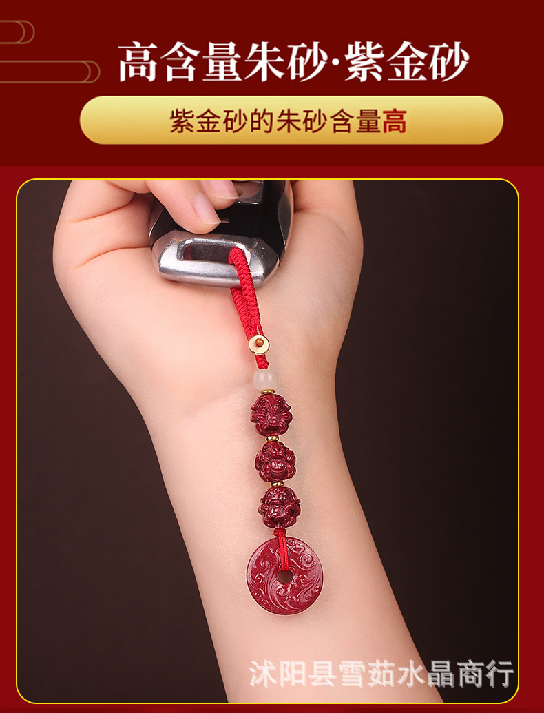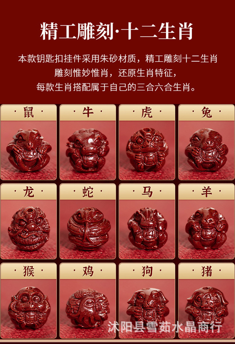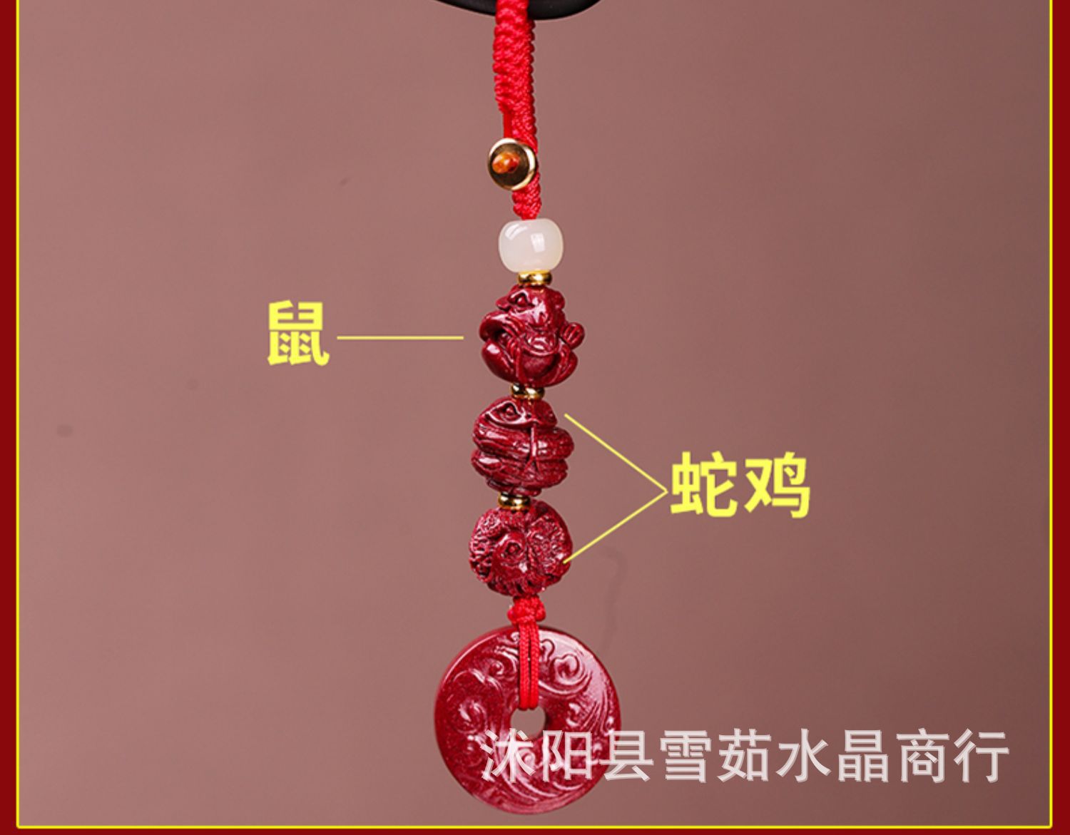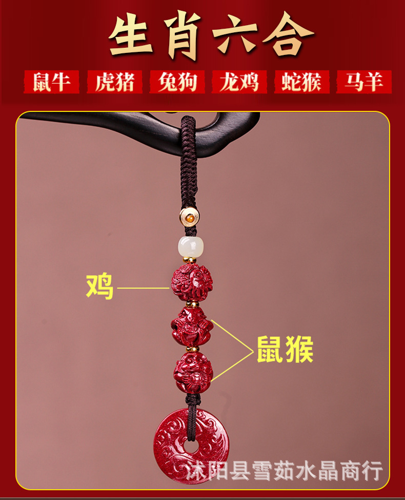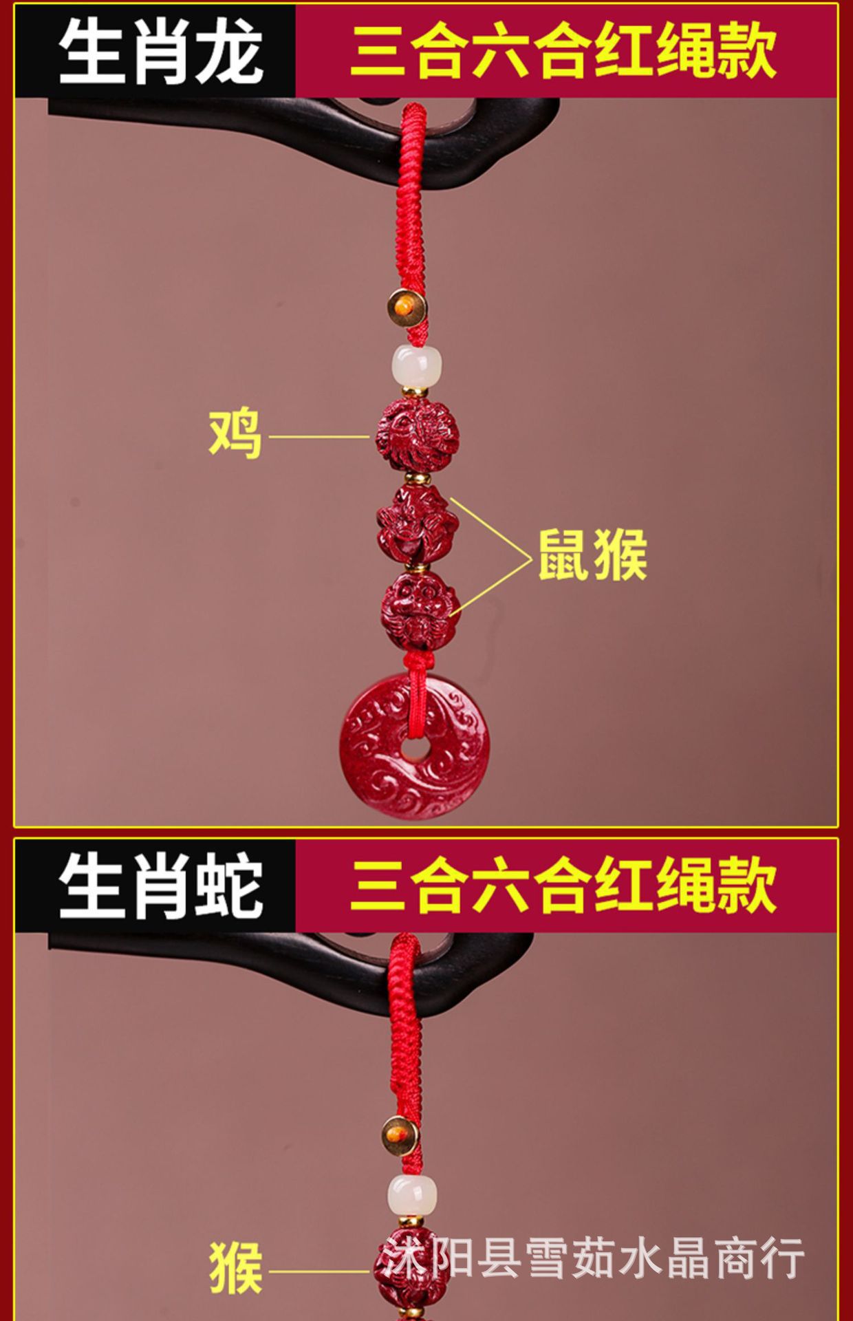 • 양 삼합 육합 붉은 밧줄 열쇠고리