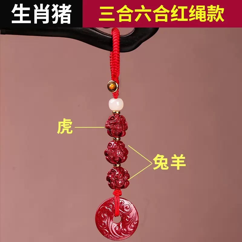 • 돼지 삼합 육합 붉은 밧줄 열쇠고리