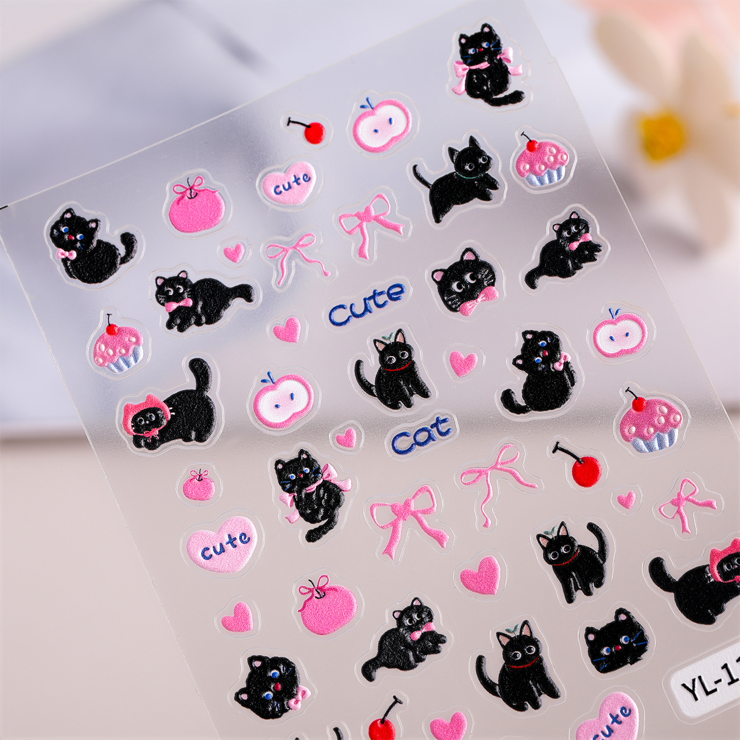 귀여운 고양이 네일 스티커 5D 구호 3 차원 접착제 달콤한 시원한 흑백 새끼 고양이 네일 스티커 보석 YL스토어 가기