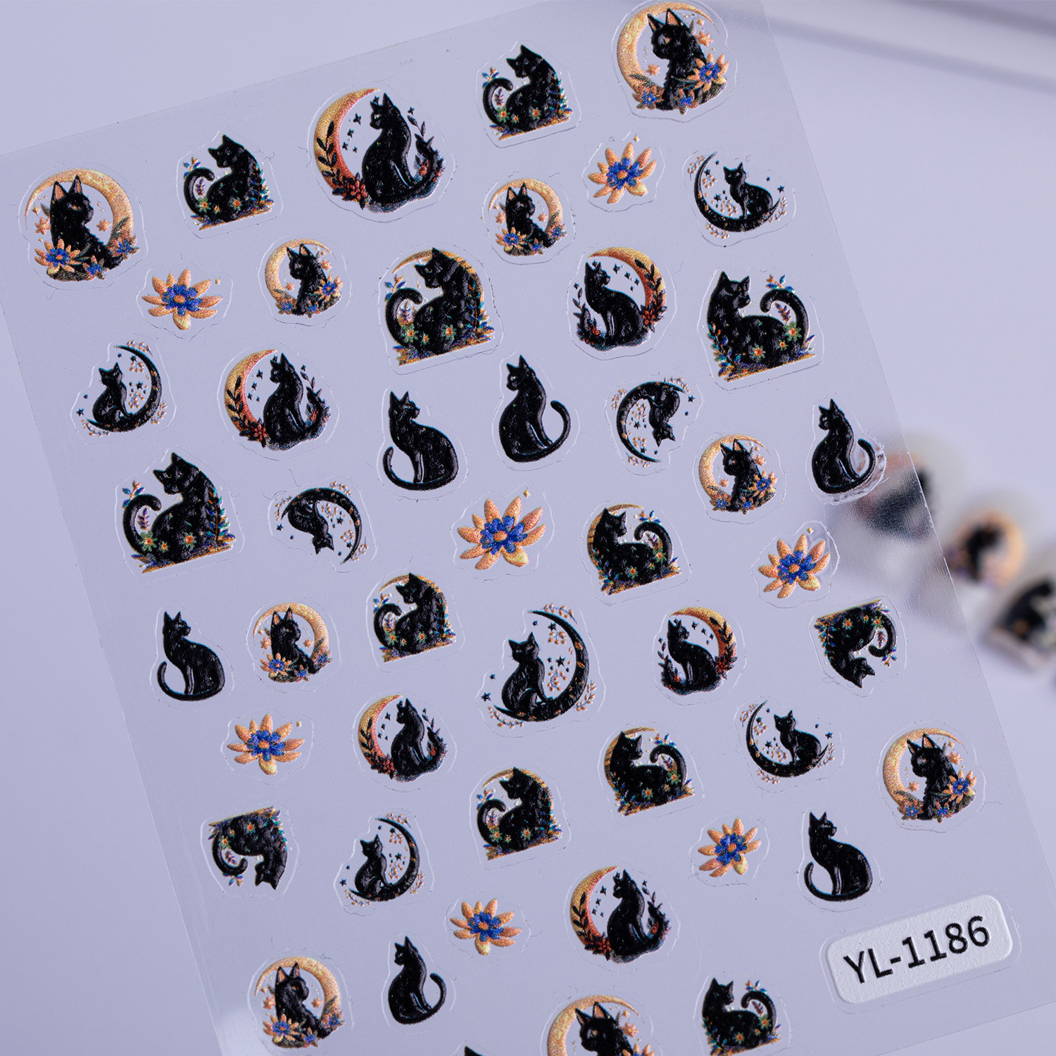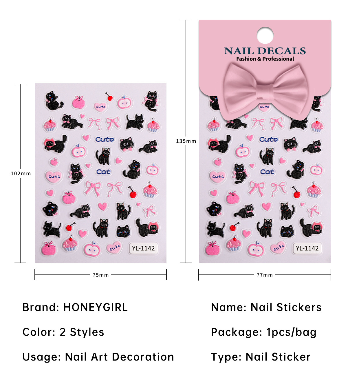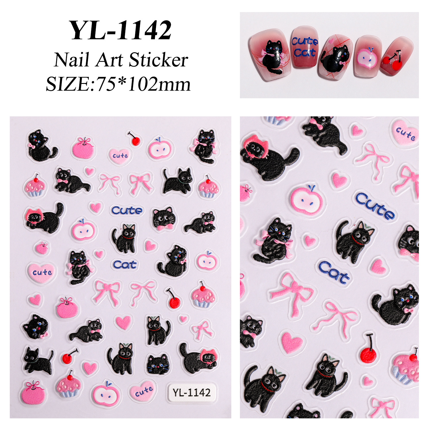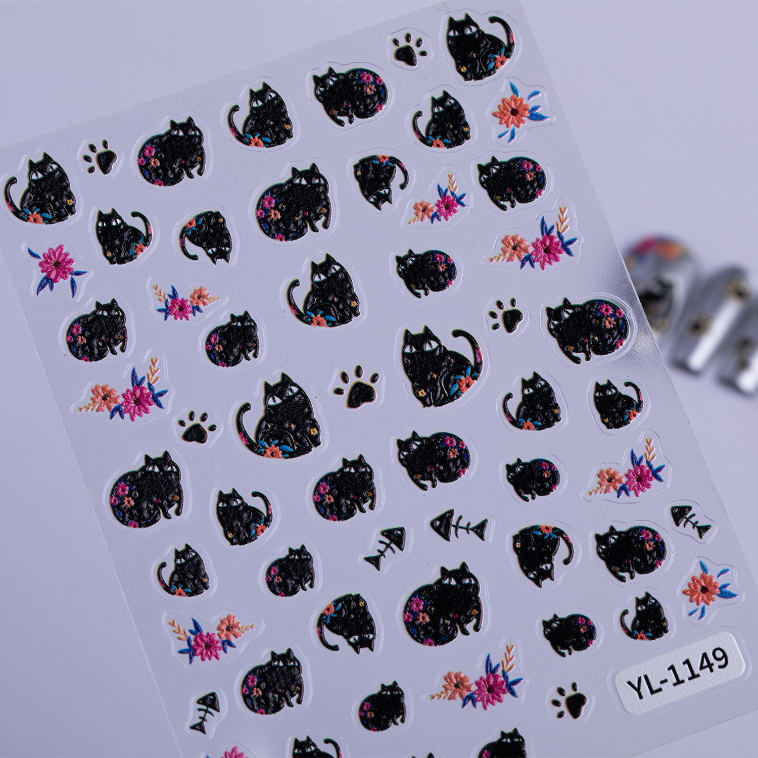 귀여운 고양이 네일 스티커 5D 구호 3 차원 접착제 달콤한 시원한 흑백 새끼 고양이 네일 스티커 보석 YL