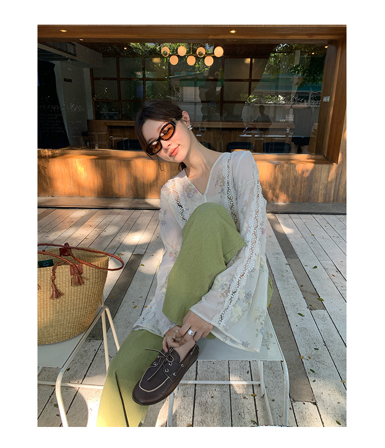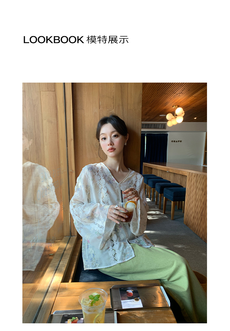 Quan Shimei NEWOPEN 2025 이른 봄 새로운 중국 스타일 선 스타일 세련되고 아름다운 중공 쉬폰 셔츠 C3552스토어 가기
