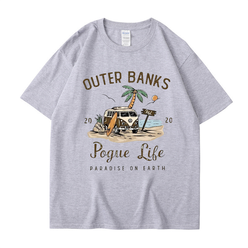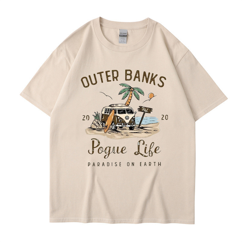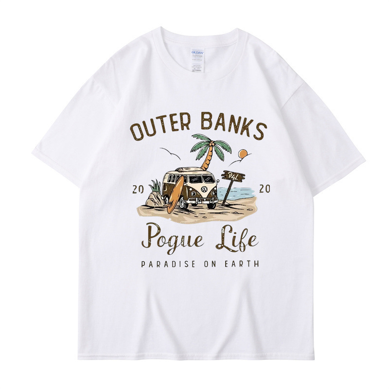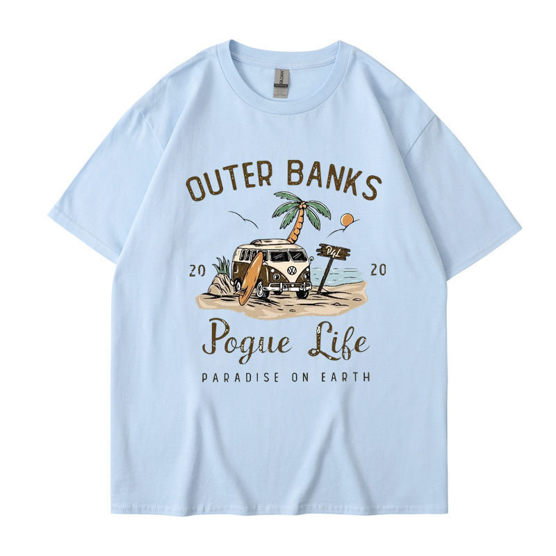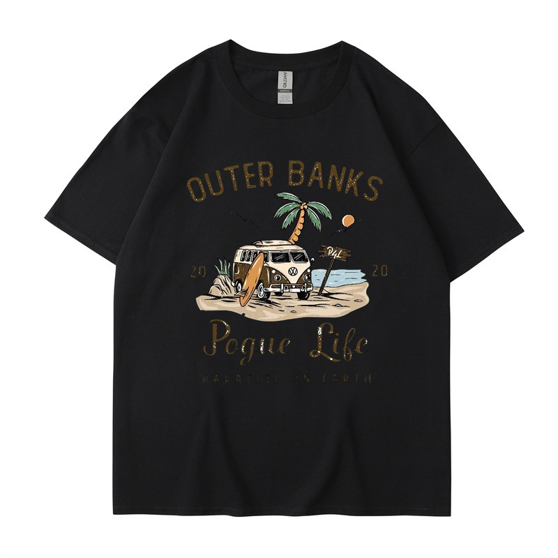 2025 새로운 국경 외부 Banks3 번드 제도 일본 빈티지 프린트 티셔츠 남성과 여성의 짧은 소매