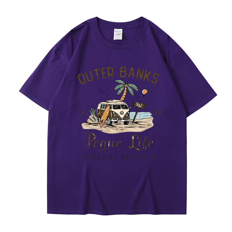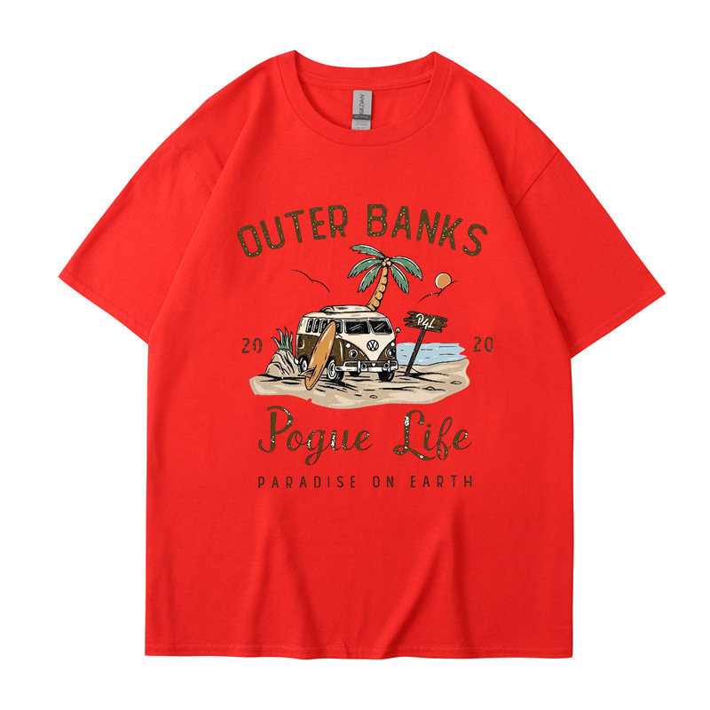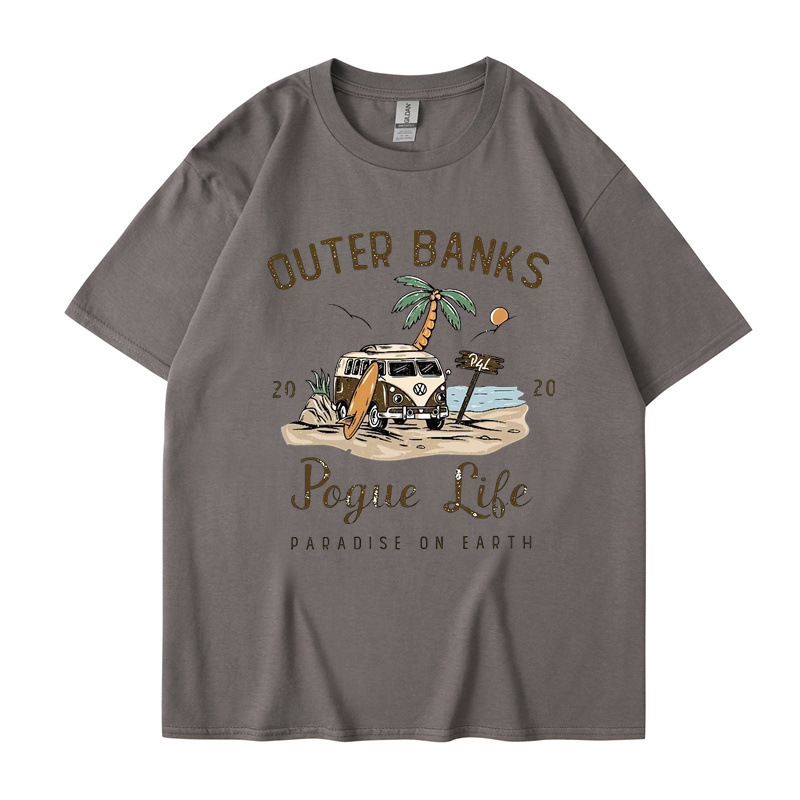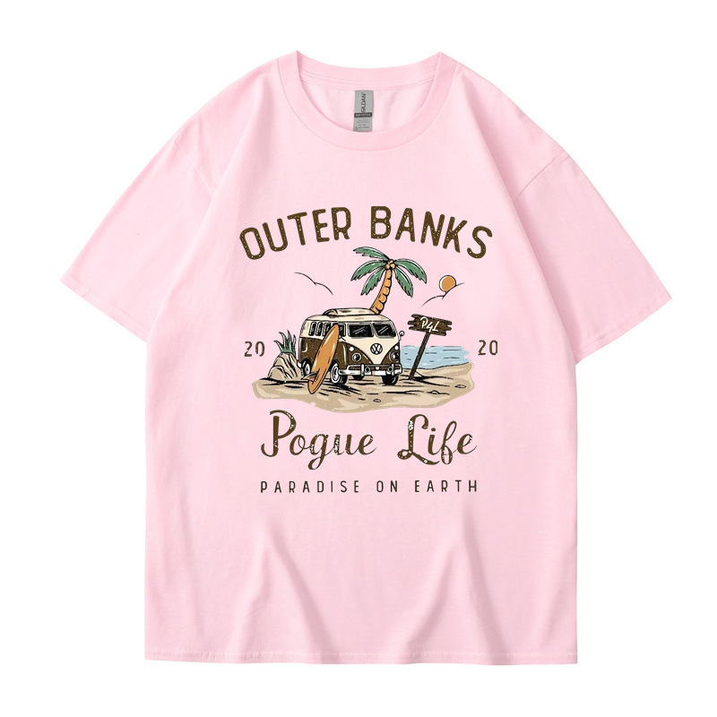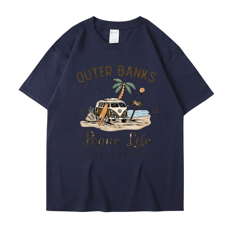 2025 새로운 국경 외부 Banks3 번드 제도 일본 빈티지 프린트 티셔츠 남성과 여성의 짧은 소매