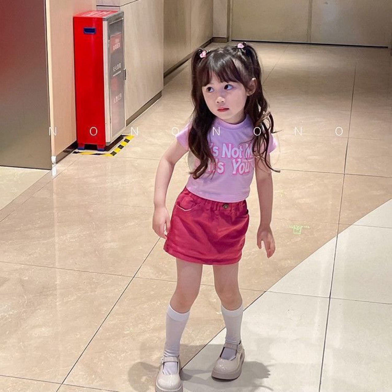 2025 여자 여름 달콤한 뜨거운 소녀 스타일 핑크 편지 반팔 티셔츠 탑 데님 짧은 치마 투피스 세트 치마스토어 가기