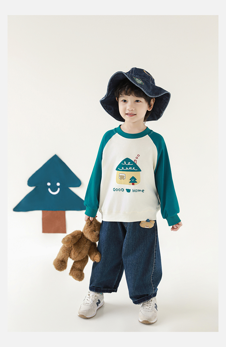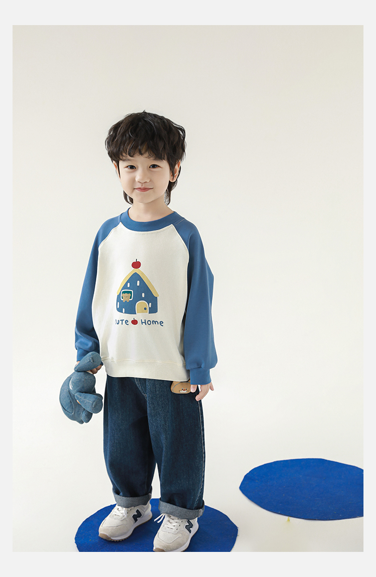YOEHYAUL/Young Youchun Two Wave Boys의 4 색 작은 집 고급 면 대비 어깨 만화 스웨트 셔츠 N5666스토어 가기