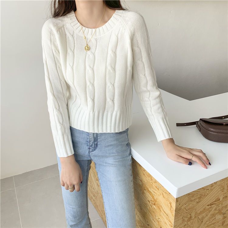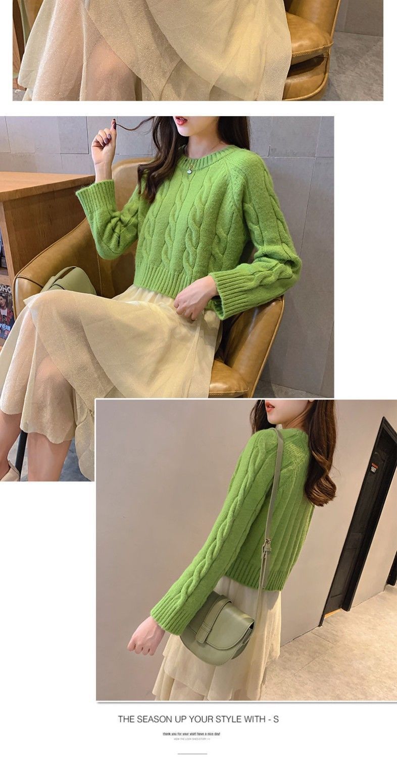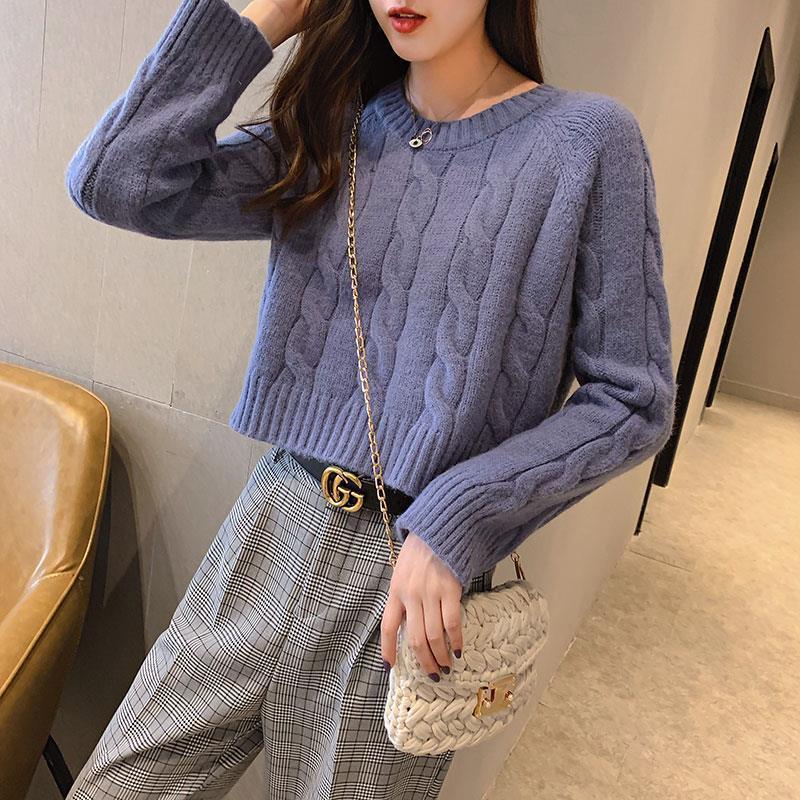 두꺼운 아보카도 그린 스웨터 여성의 가을과 겨울 새로운 한국 스타일 학생 트위스트 게으른 스타일 풀오버 스웨터 탑 트렌디스토어 가기