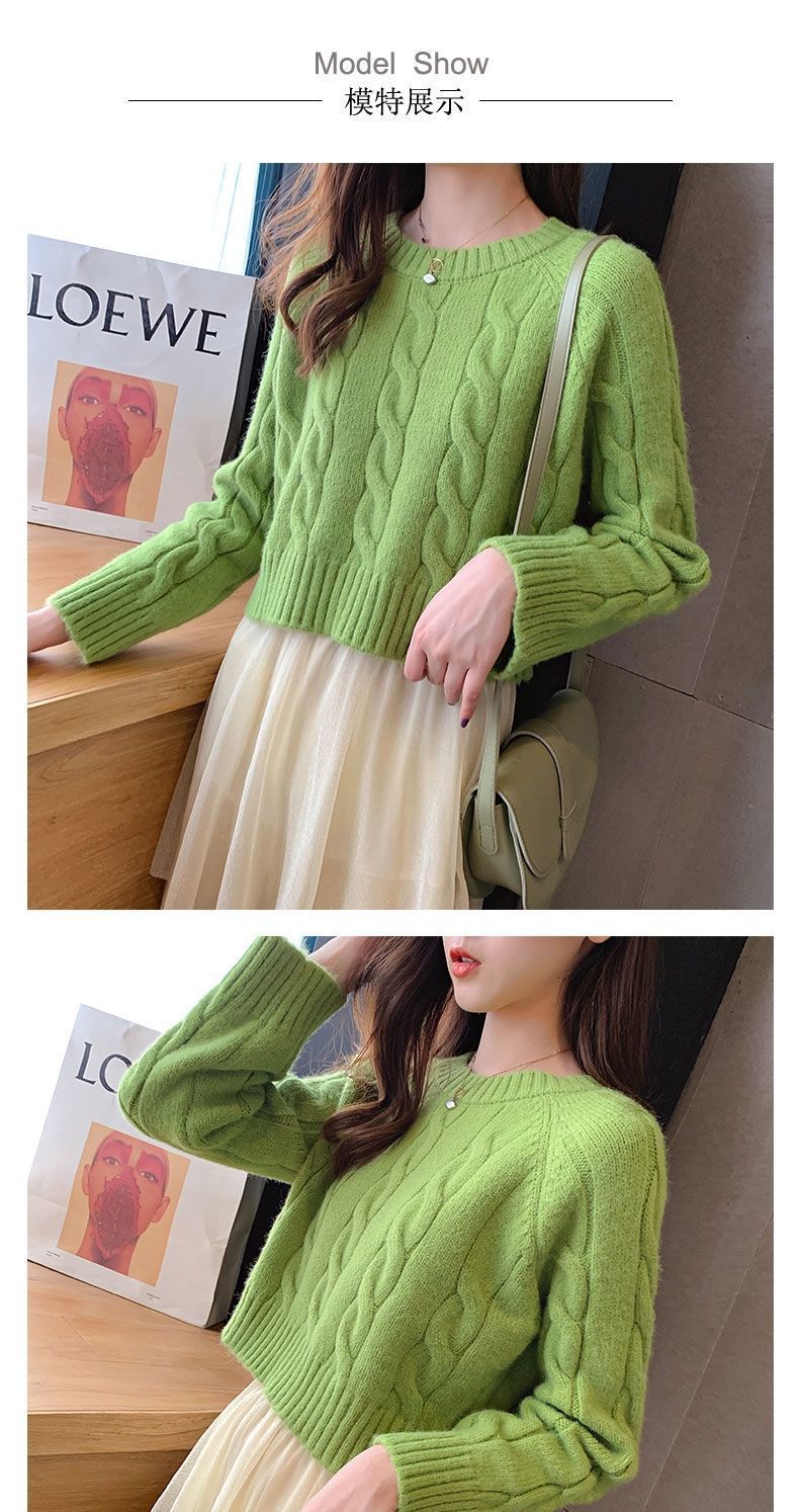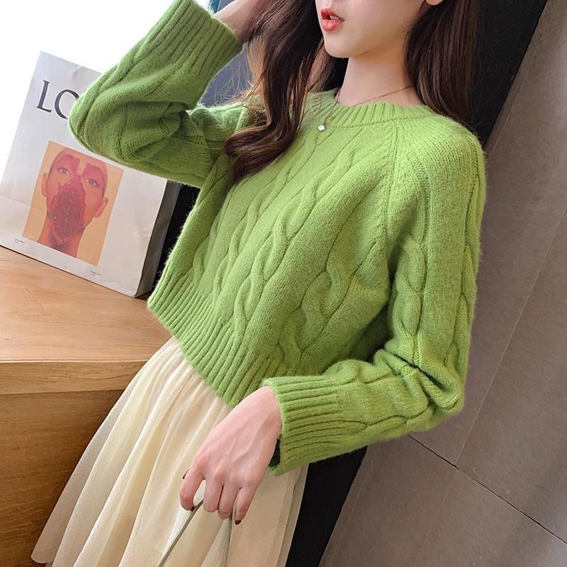 두꺼운 아보카도 그린 스웨터 여성의 가을과 겨울 새로운 한국 스타일 학생 트위스트 게으른 스타일 풀오버 스웨터 탑 트렌디
