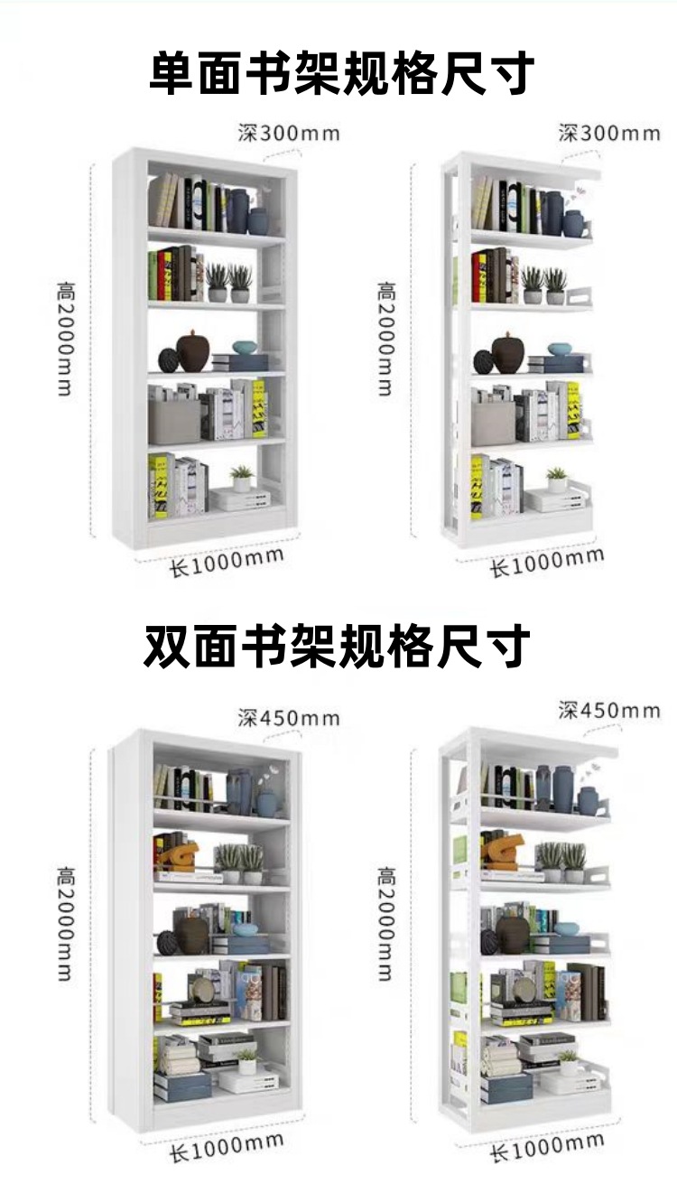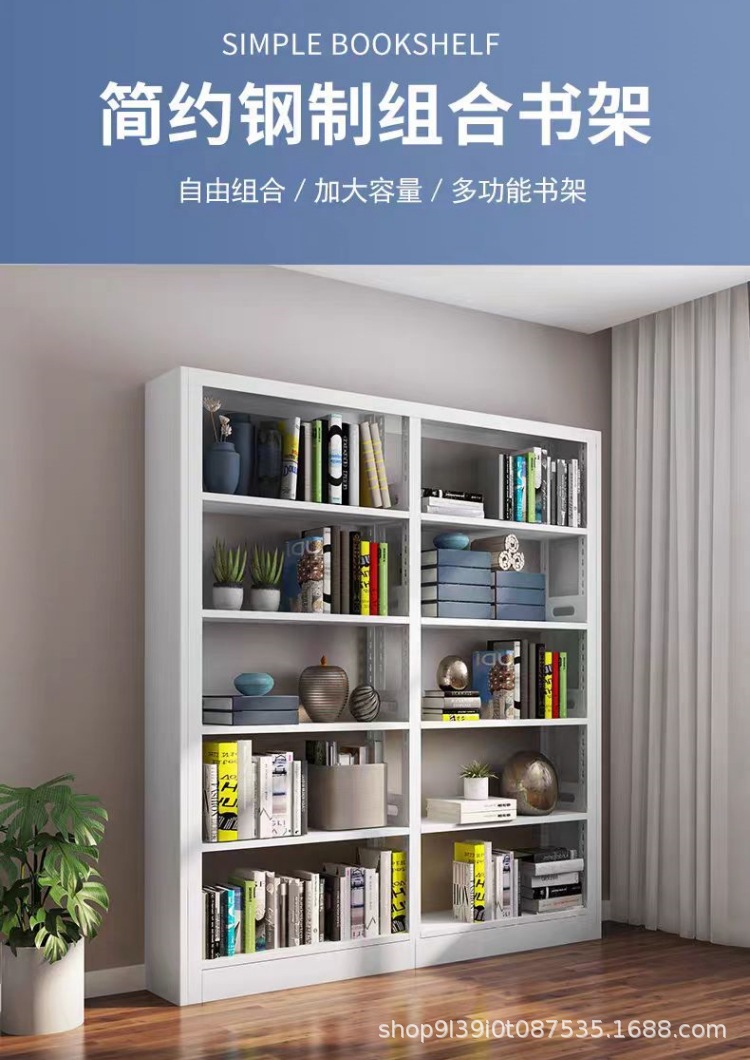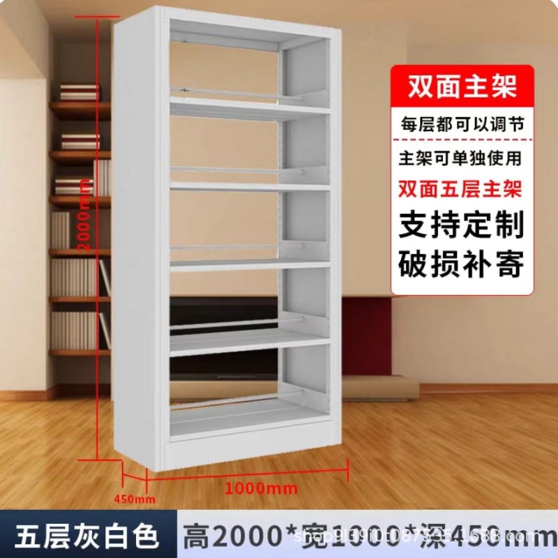 강철 책장 강철 목재 가드 플레이트 도서관 책장 양면 단면 독서실 철제 금속 도서관 책장