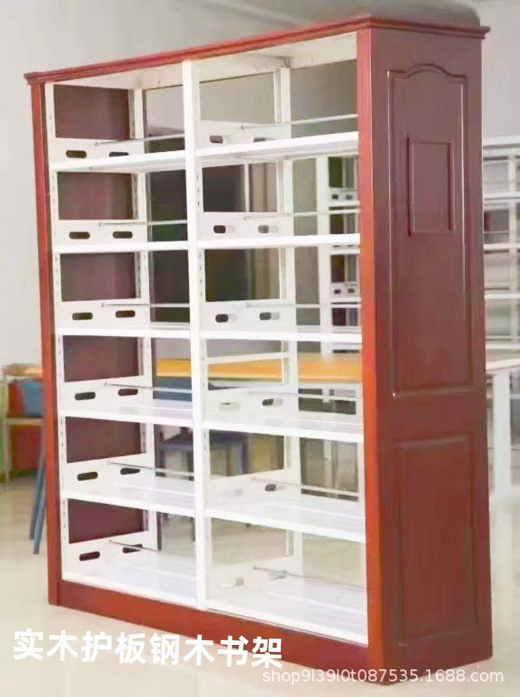 钢制书架钢木护板图书馆书架双面单面阅览室铁制金属图书室书架子