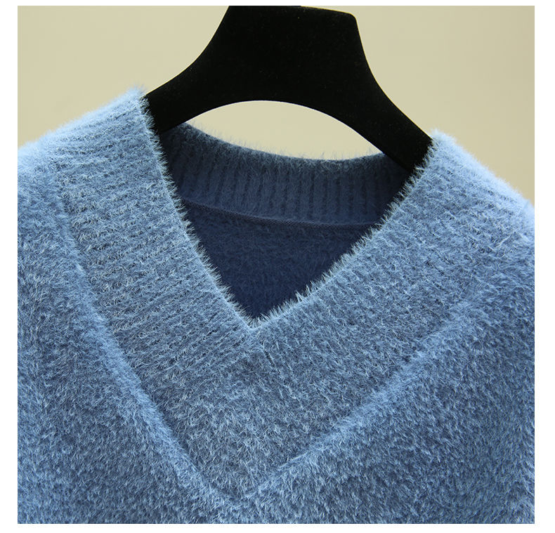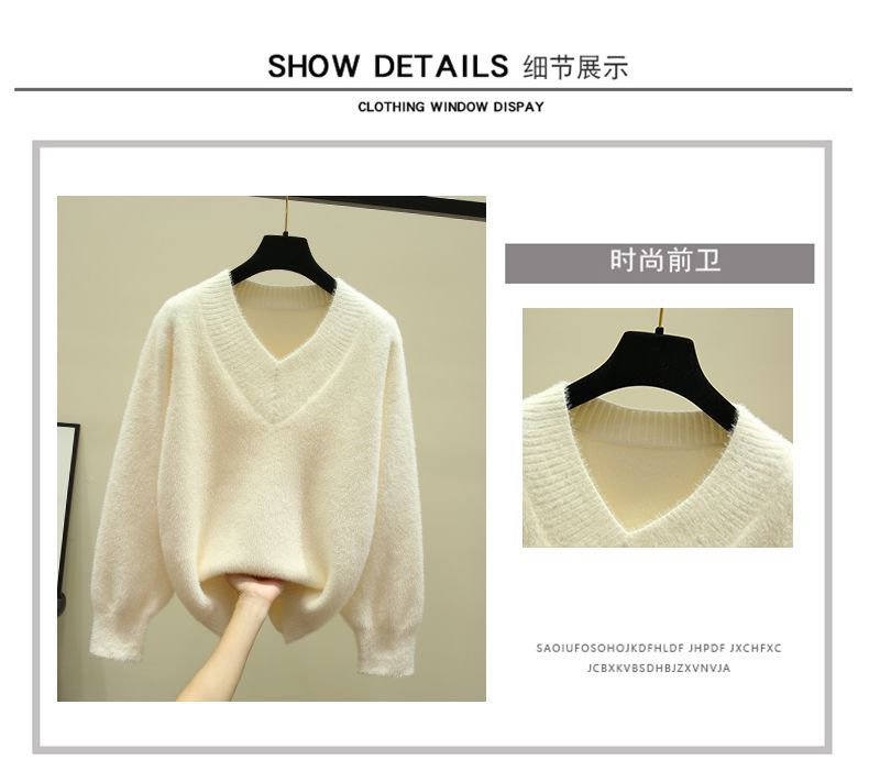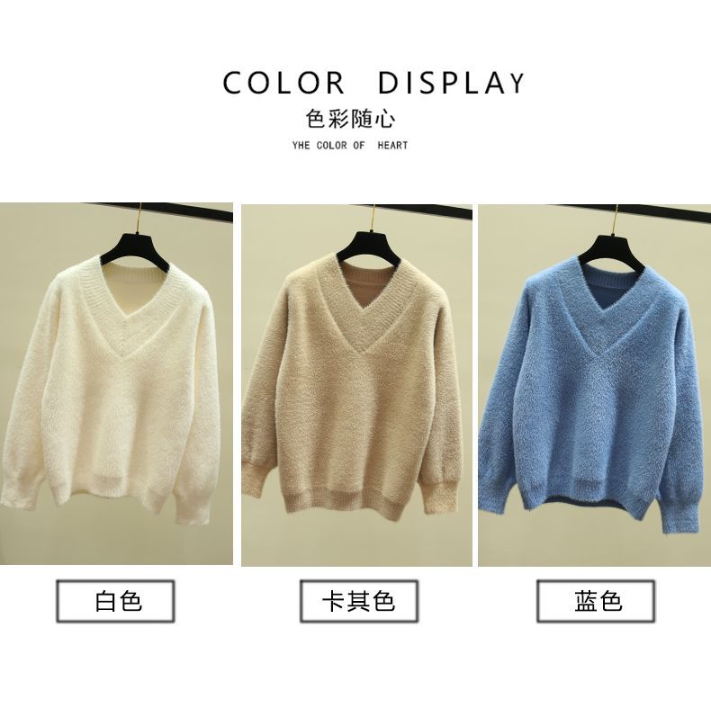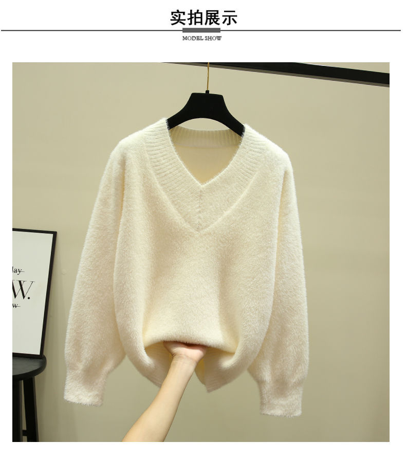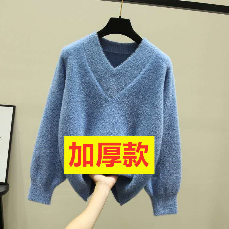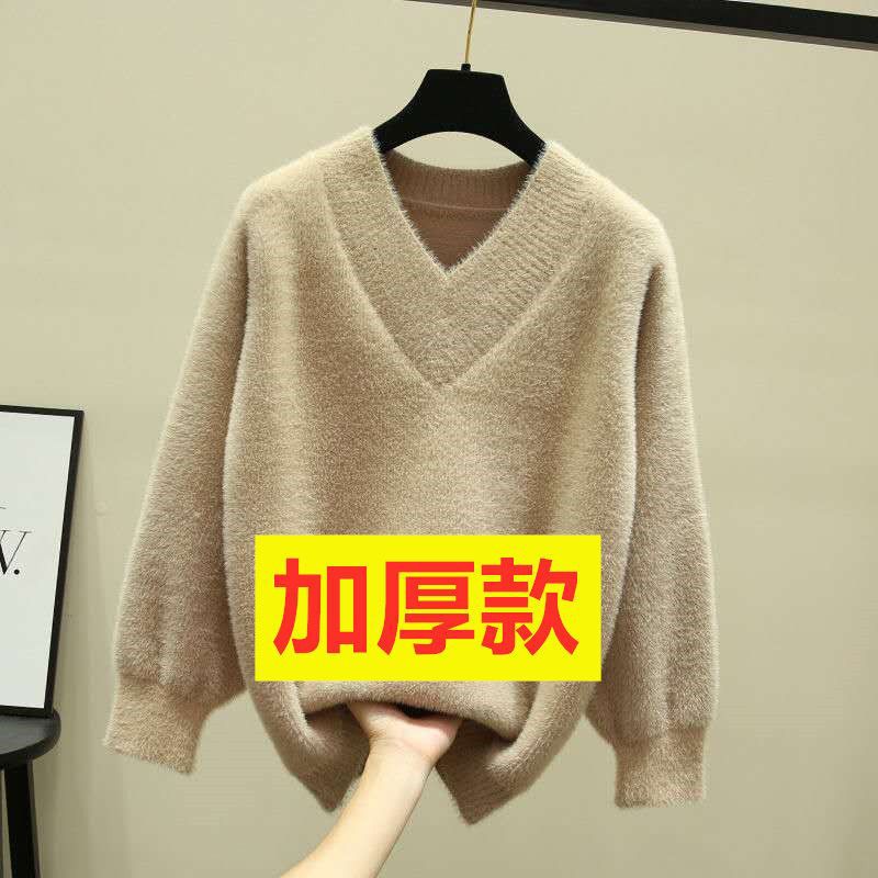 모방 밍크 벨벳 V-넥 스웨터 여성 풀오버 한국식 루즈 아우터 두꺼운 올매치 봄과 가을 니트 탑베이스 셔츠스토어 가기
