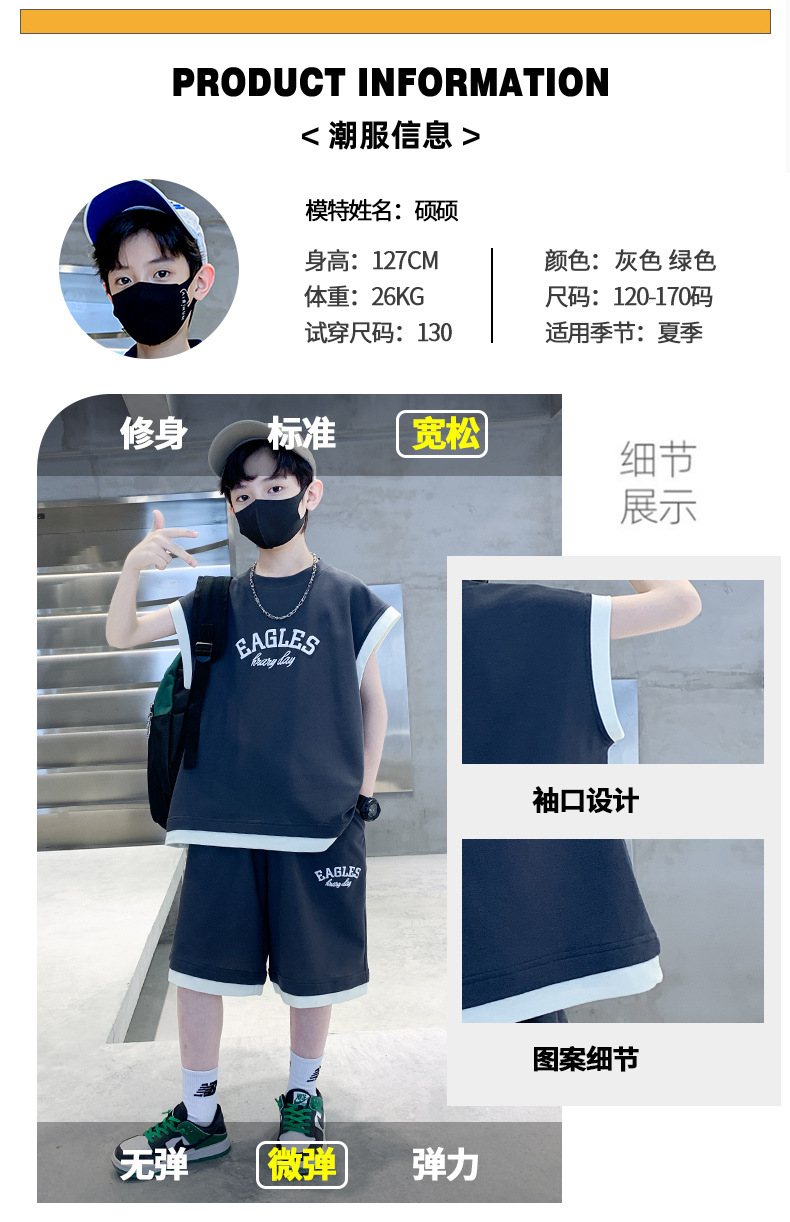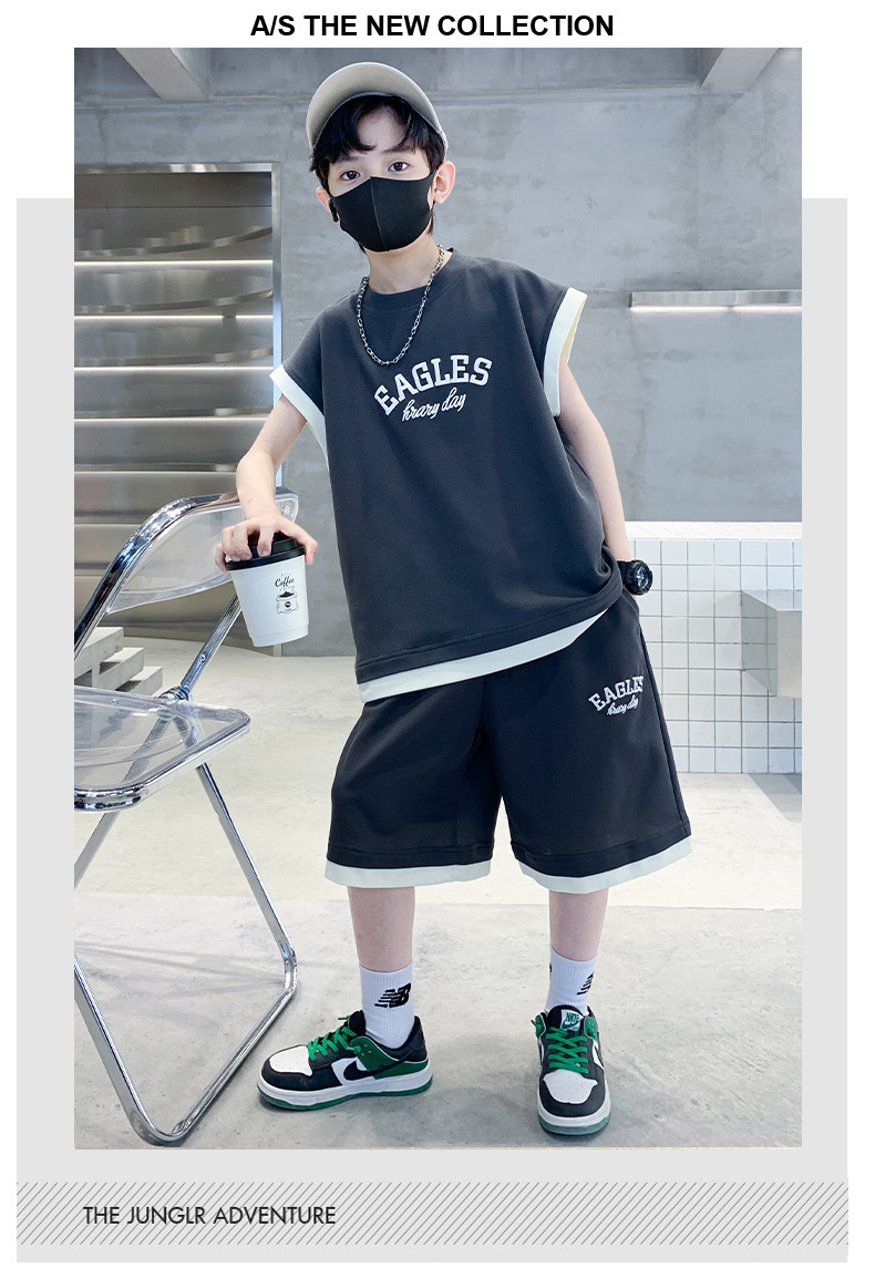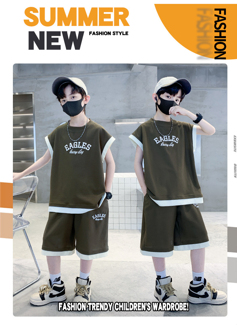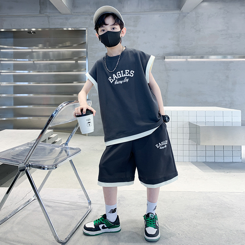 소년 여름 스포츠 세트 2025 새로운 cuhk 어린이 여름 소년 조끼 멋진 잘 생긴 유행 온라인 패션스토어 가기