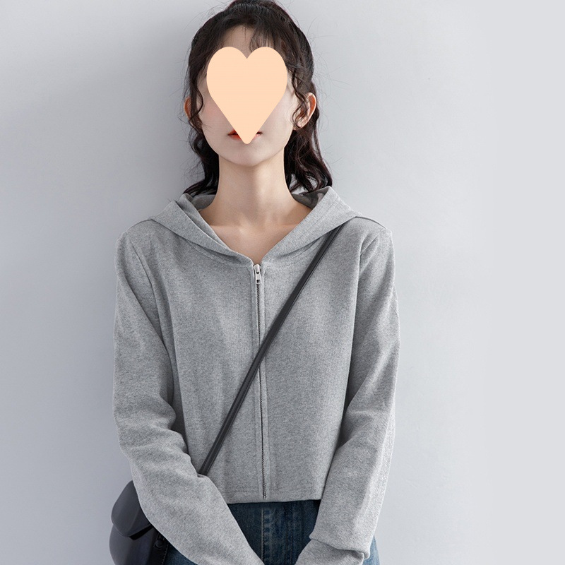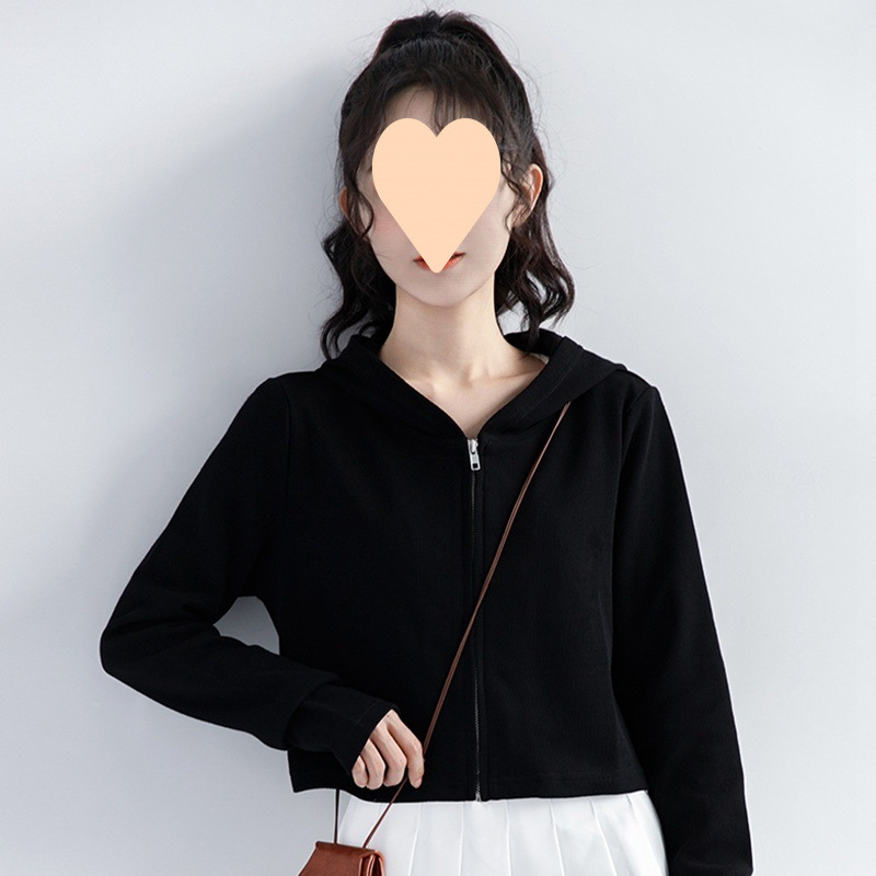 후드 스웨터 여성의 봄과 가을 얇은 유행 달콤한 올 매치 디자인 센스 긴 소매 짧은 지퍼 트렌디 카디건스토어 가기