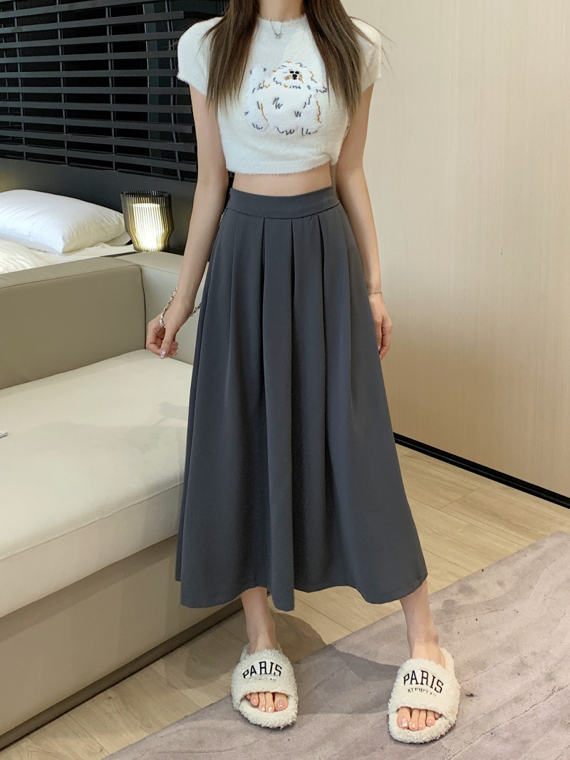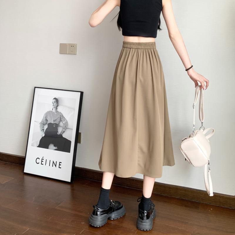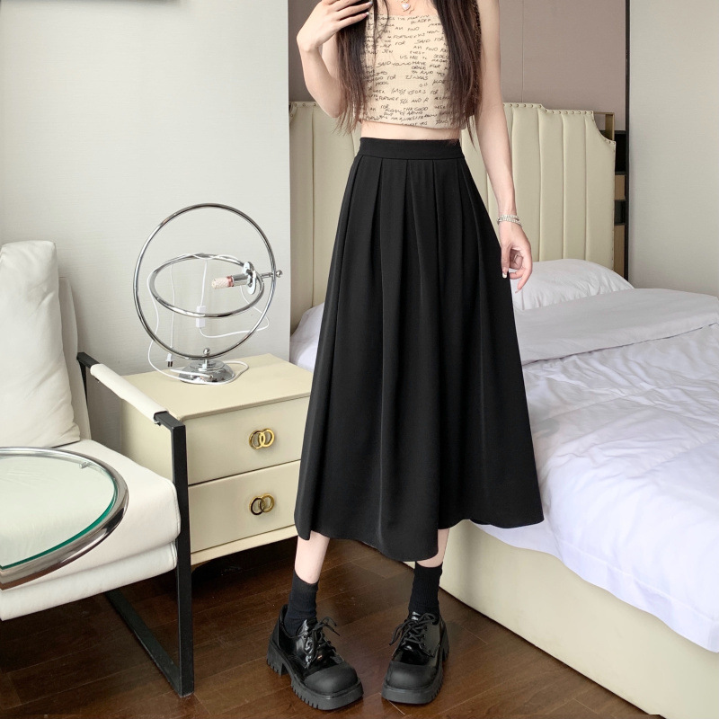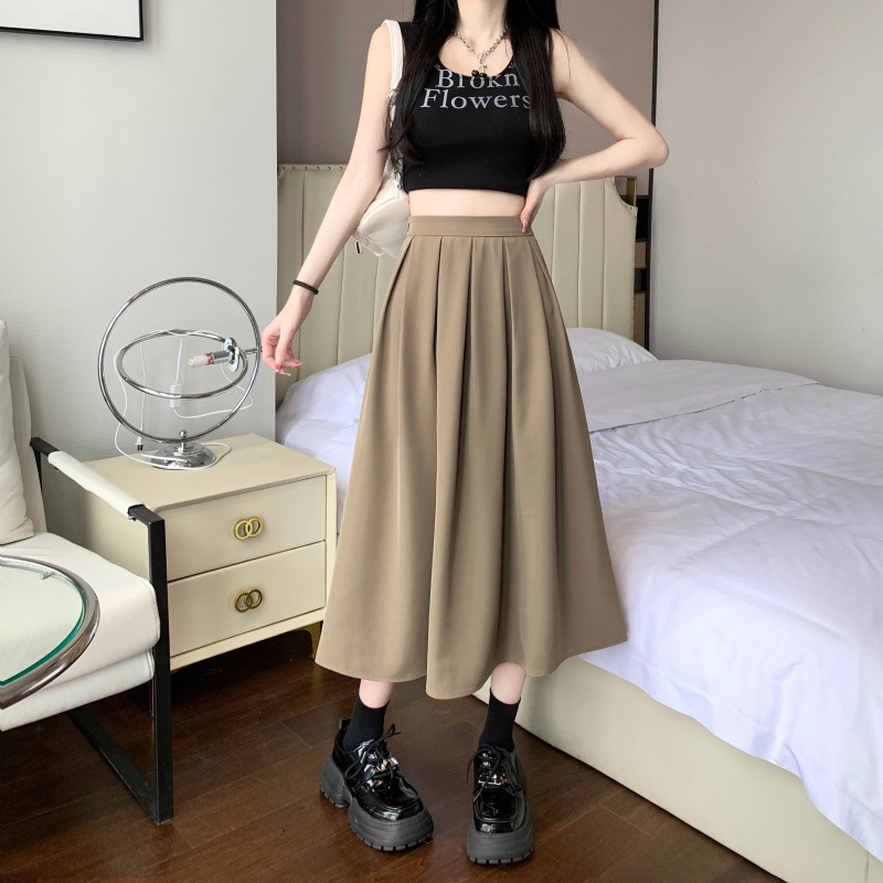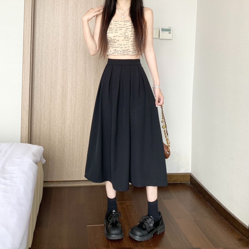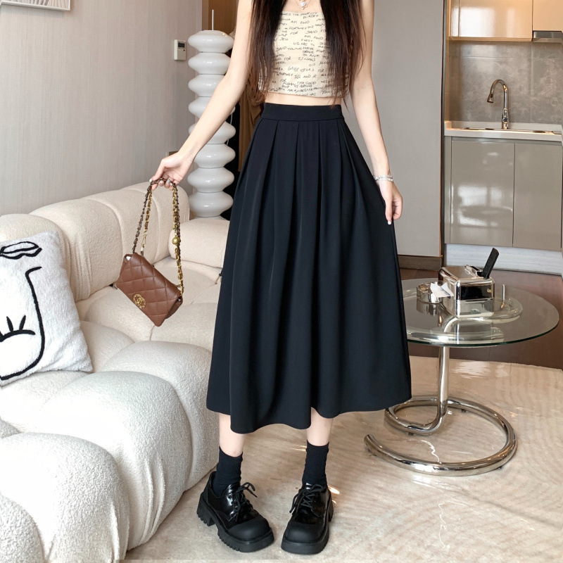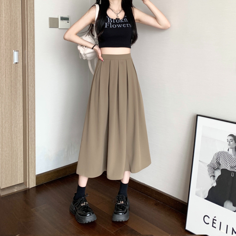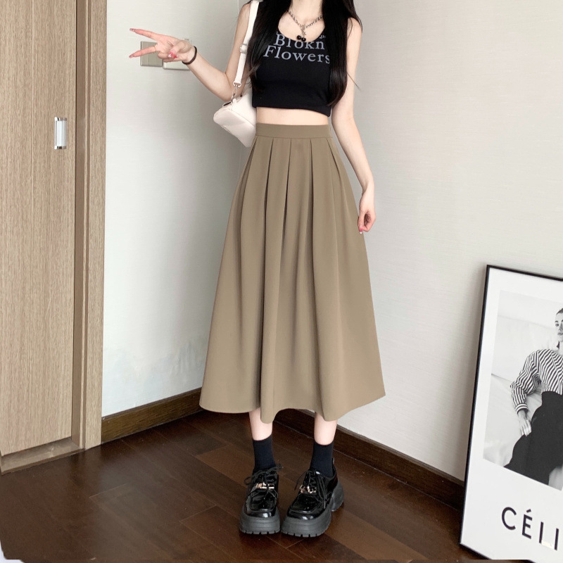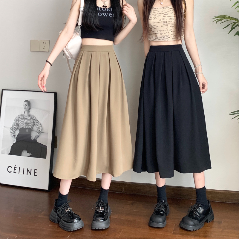 주름 치마 여성의 봄과 여름 새로운 중간 길이 세트 주름 치마 높은 허리 A 라인 우산 스커트 슬리밍 우아한 긴 치마