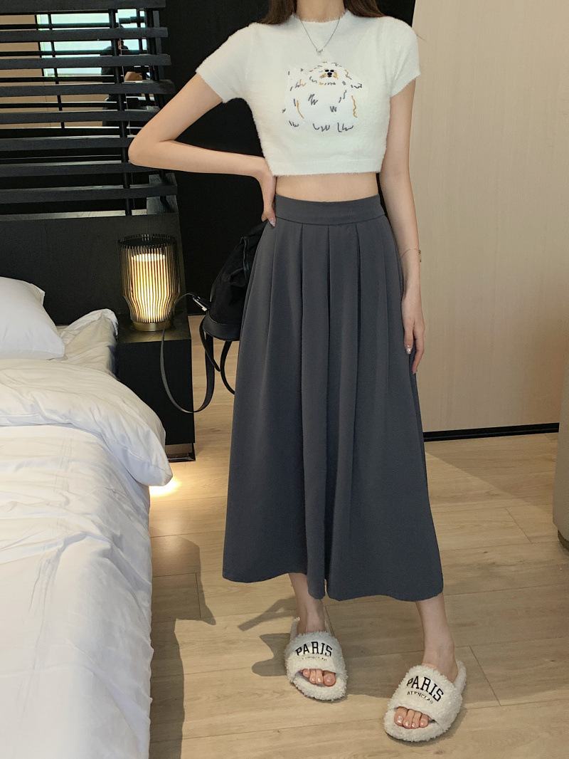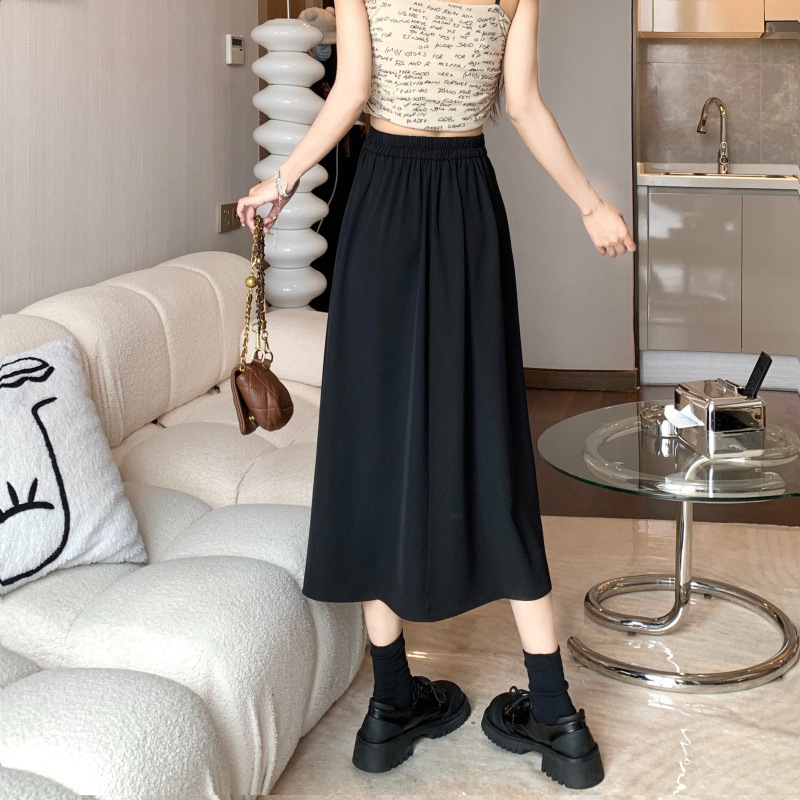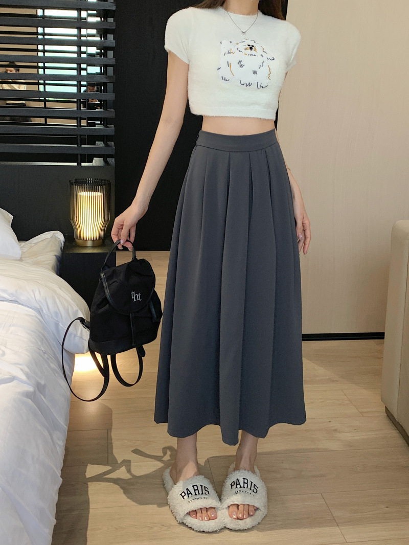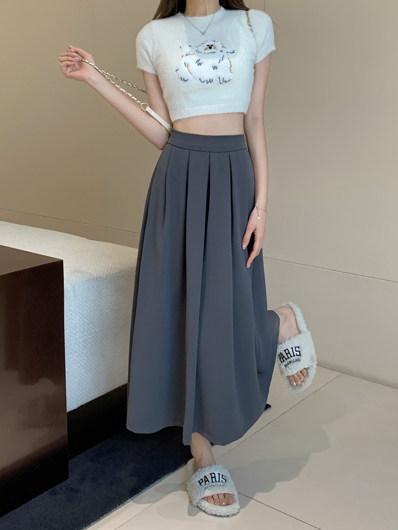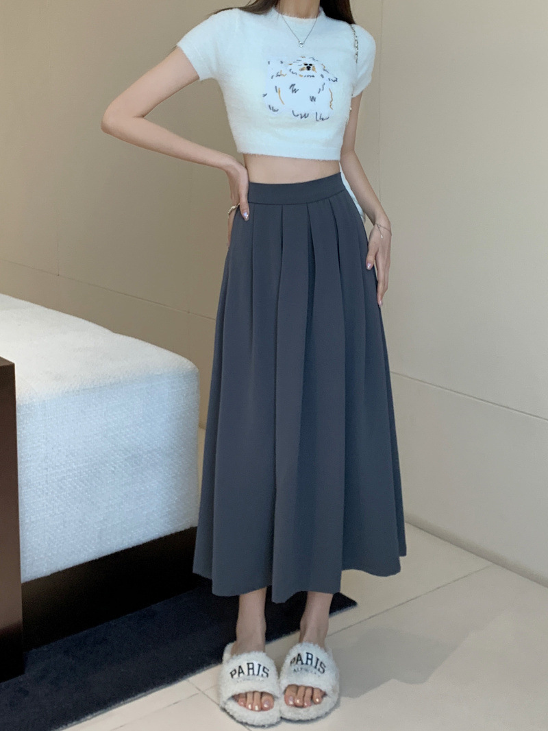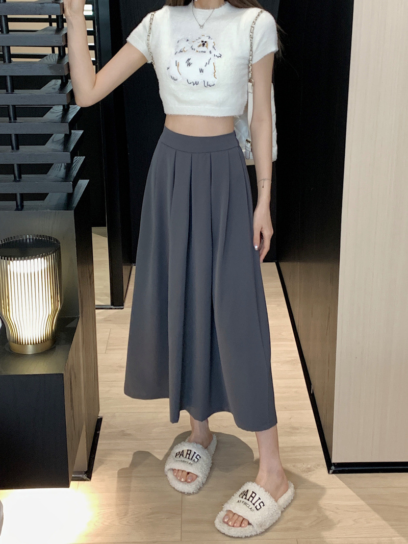 주름 치마 여성의 봄과 여름 새로운 중간 길이 세트 주름 치마 높은 허리 A 라인 우산 스커트 슬리밍 우아한 긴 치마