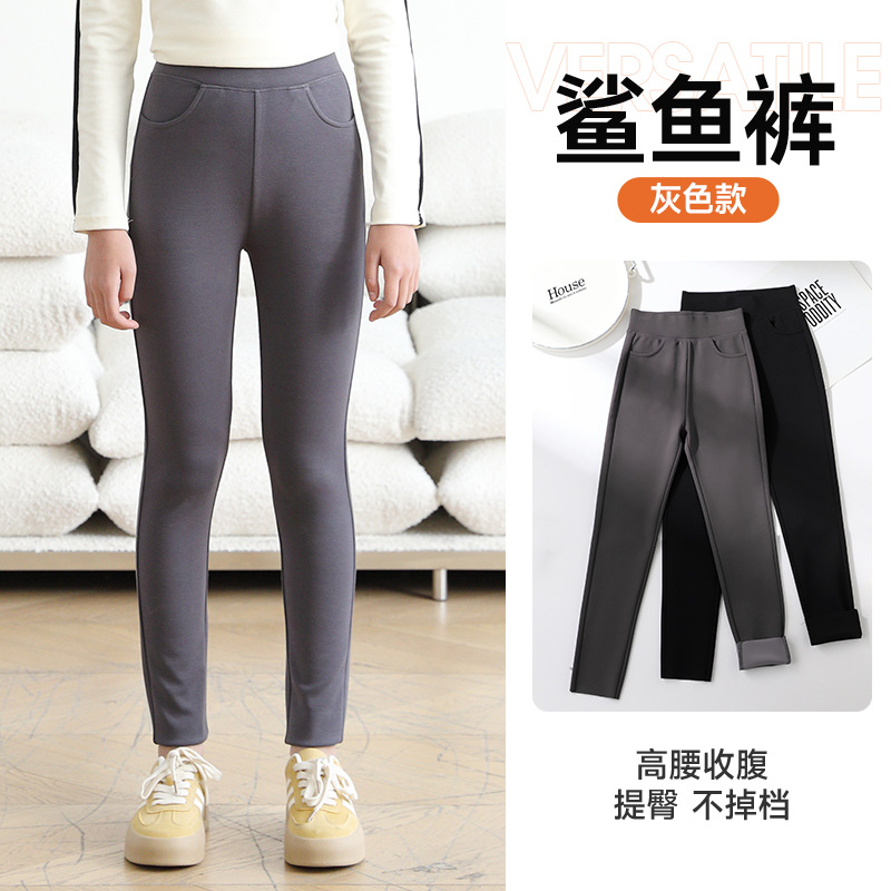 소녀의 상어 레깅스 얇은 어린이 높은 허리 스트레치 레깅스 대형 어린이 포켓 업그레이드 요가 스웨트 팬츠
