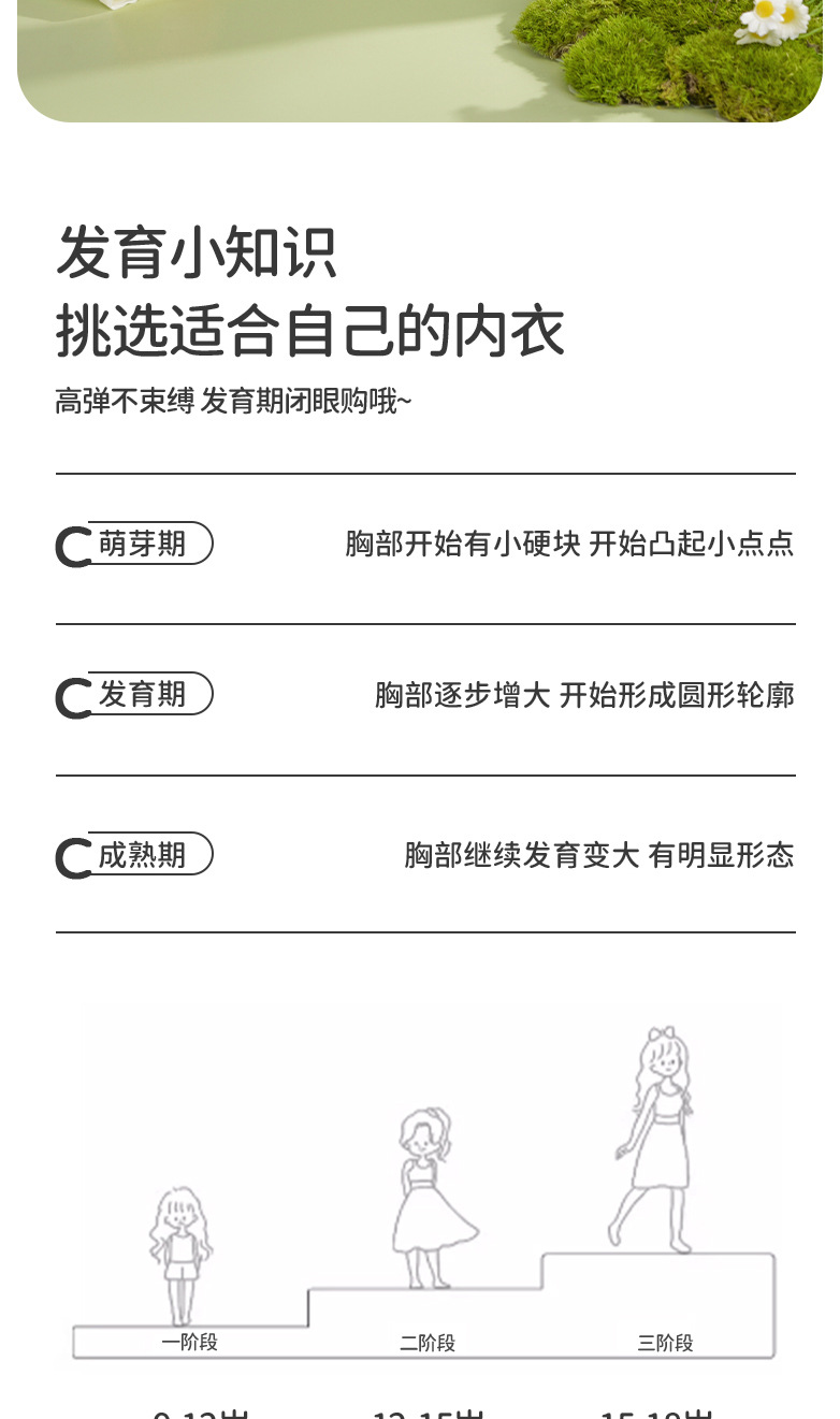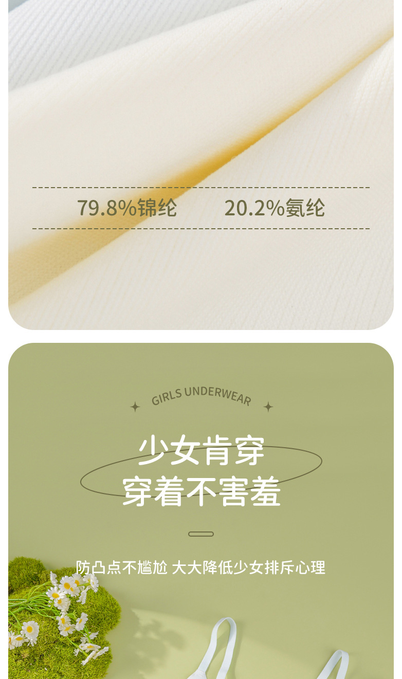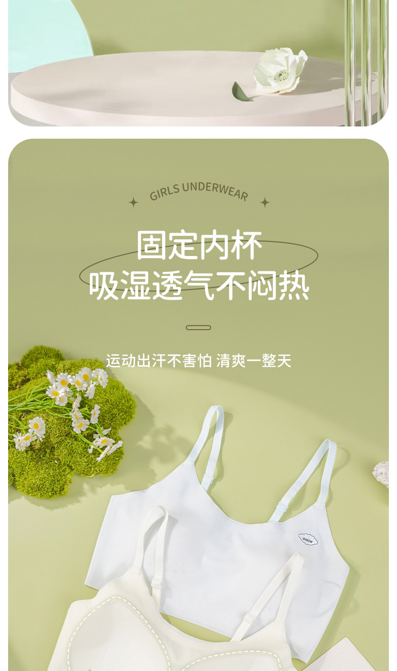 2 단계 소녀의 멜빵 속옷 소녀의 발달 기간 안티 범프 랩 가슴 원활한 고정 컵 중학생 조끼스토어 가기