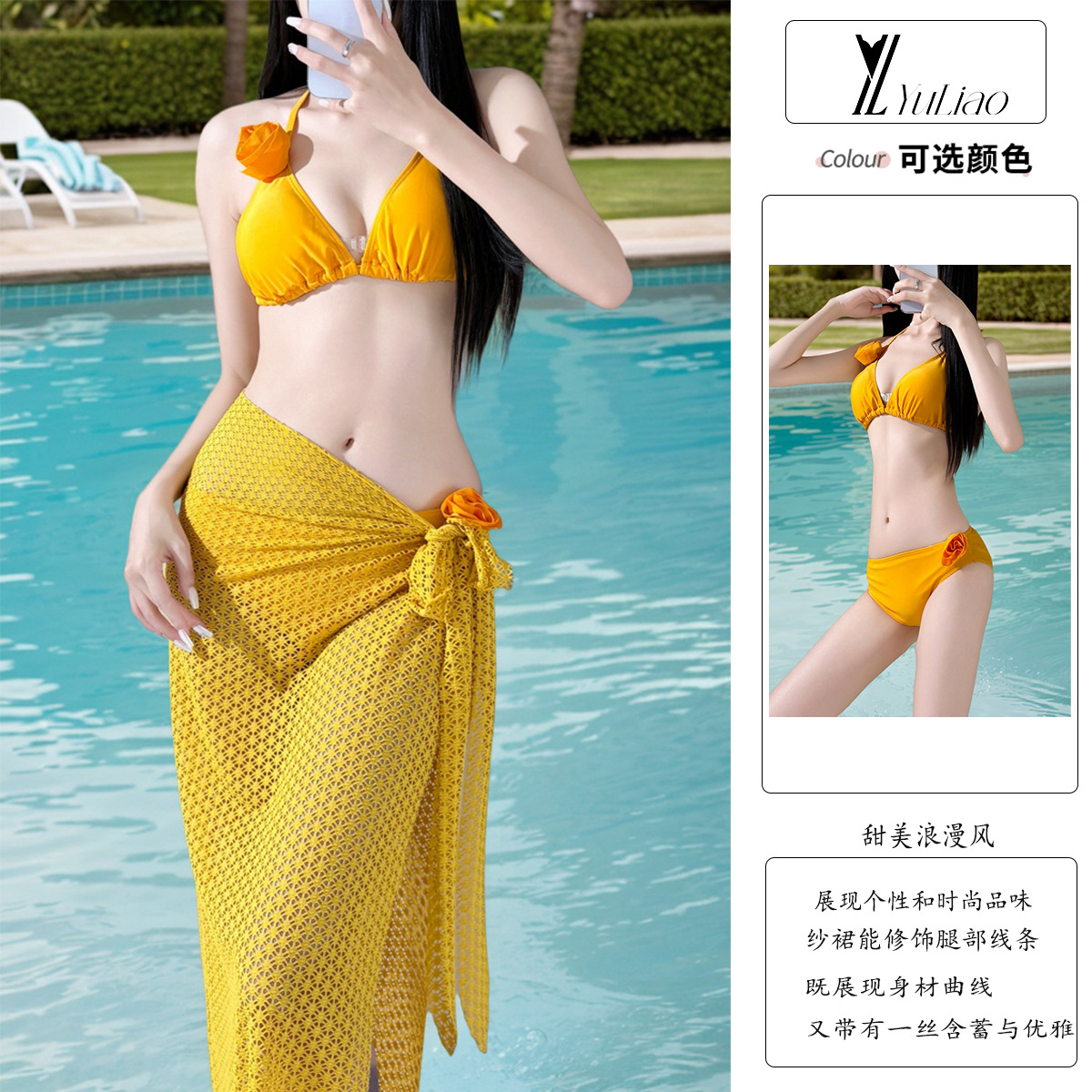 샤넬 스타일 화이트 비키니 스플릿 수영복 여성용 롱 원피스 섹시한 순수 스타일 동백 해변 태국스토어 가기