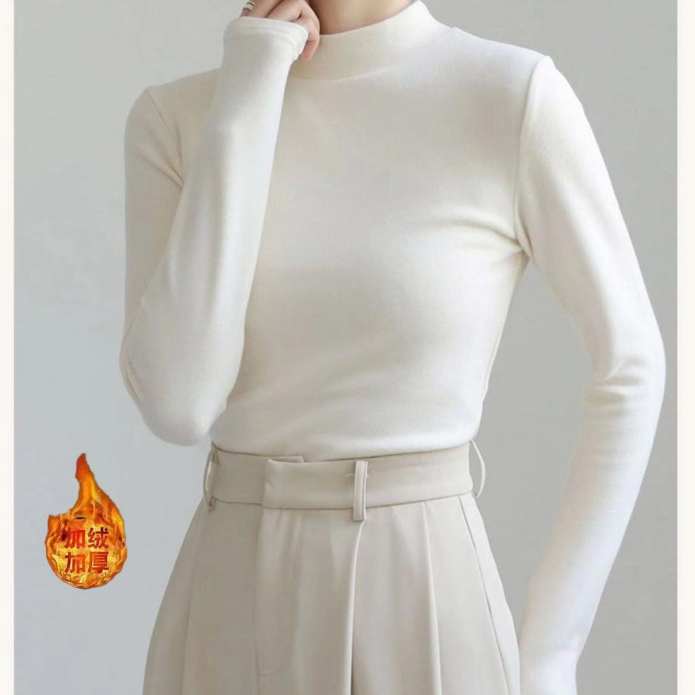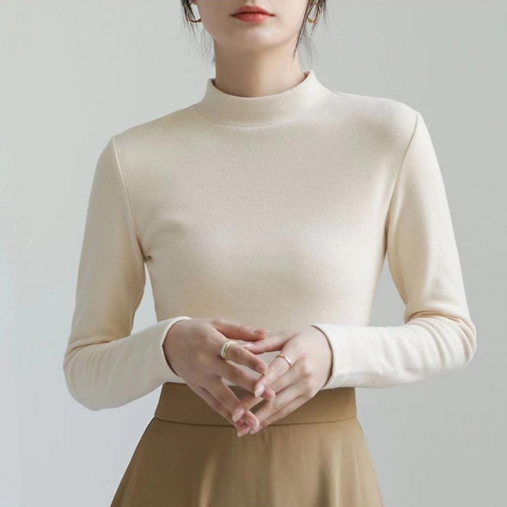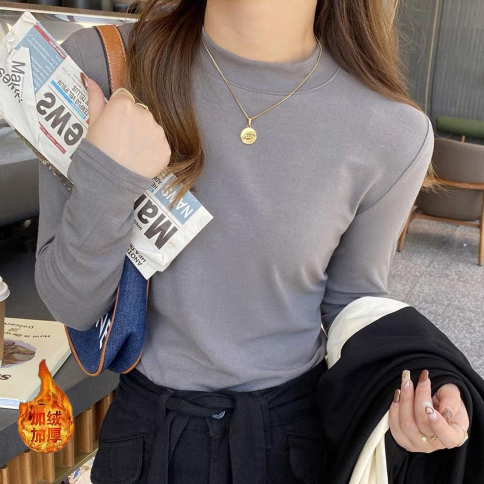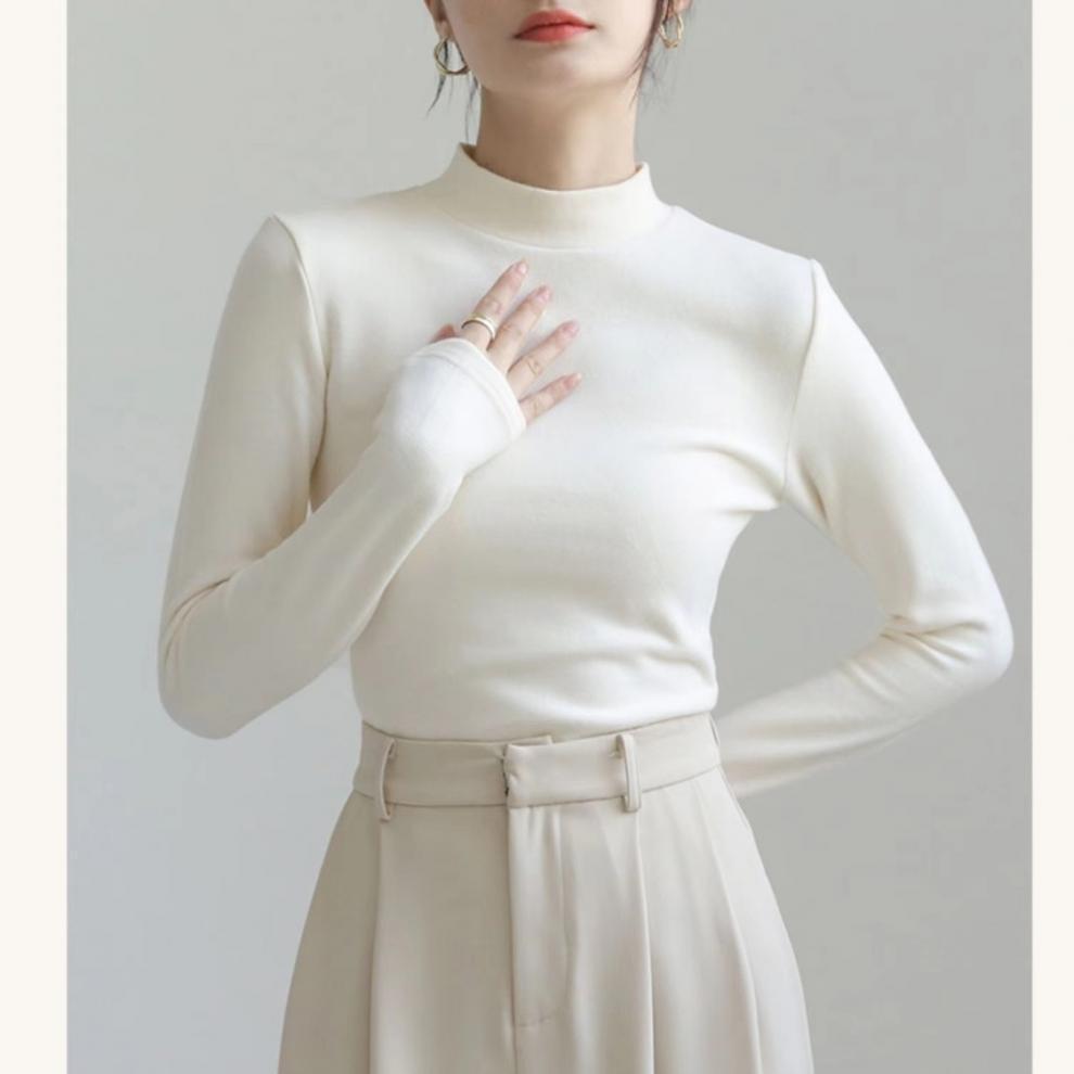 어깨 화이트 스레드 티셔츠 여성용 작은 칼라 가을과 겨울 두꺼운 샌딩 새로운 슬림 핏 내베이스 셔츠 탑인