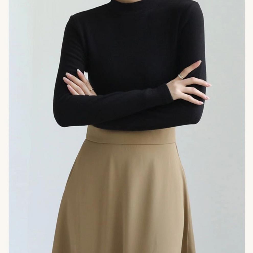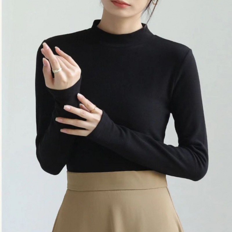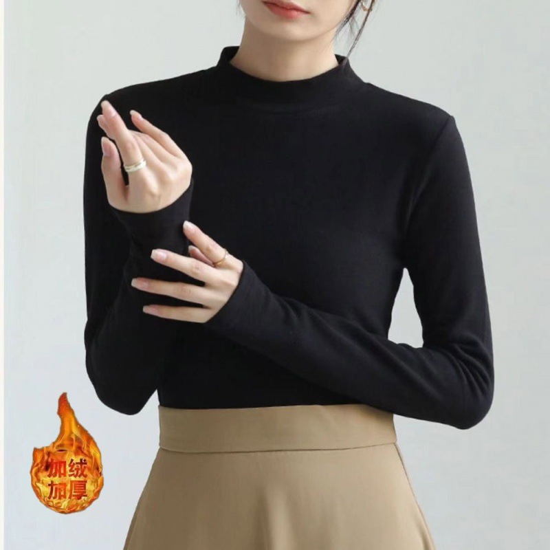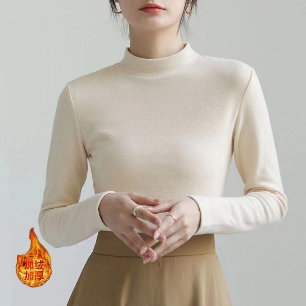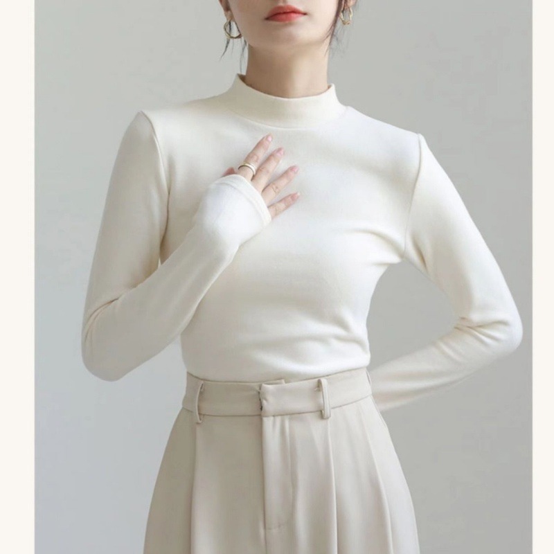 어깨 화이트 스레드 티셔츠 여성용 작은 칼라 가을과 겨울 두꺼운 샌딩 새로운 슬림 핏 내베이스 셔츠 탑인