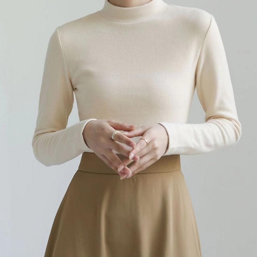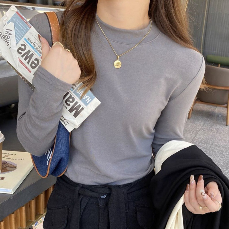 어깨 화이트 스레드 티셔츠 여성용 작은 칼라 가을과 겨울 두꺼운 샌딩 새로운 슬림 핏 내베이스 셔츠 탑인스토어 가기