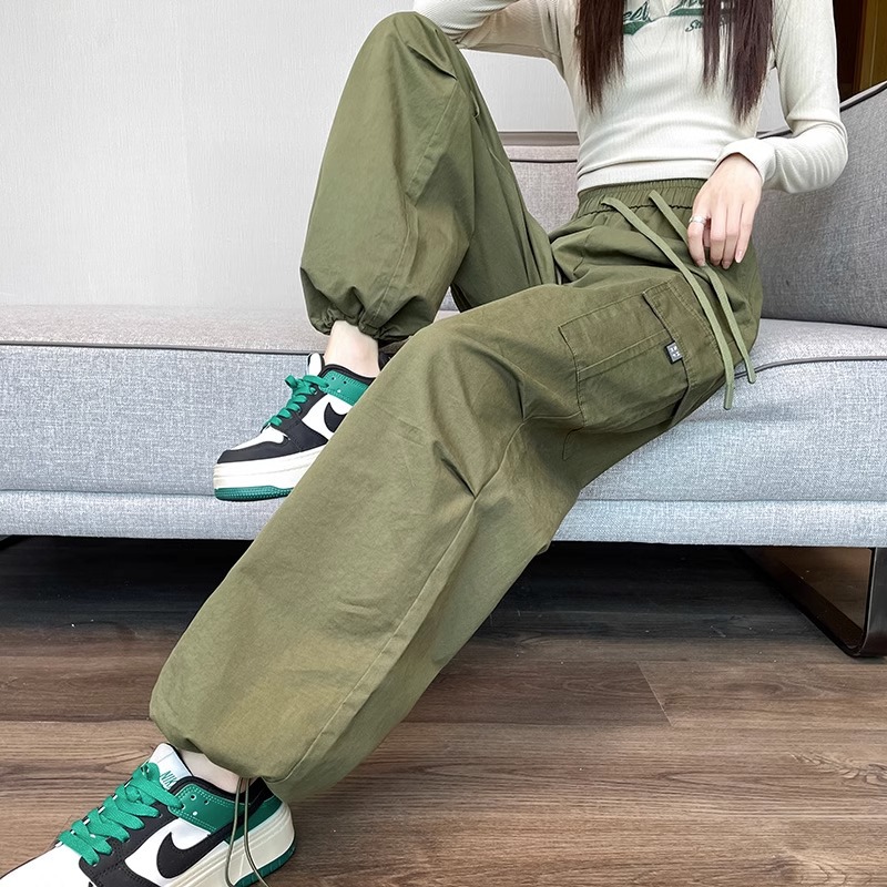 작업복 여성 2025 년 새 봄 느슨한 높은 허리 발 그리기 미국 스타일 짧은 넓은 다리 등산 스포츠 바지스토어 가기
