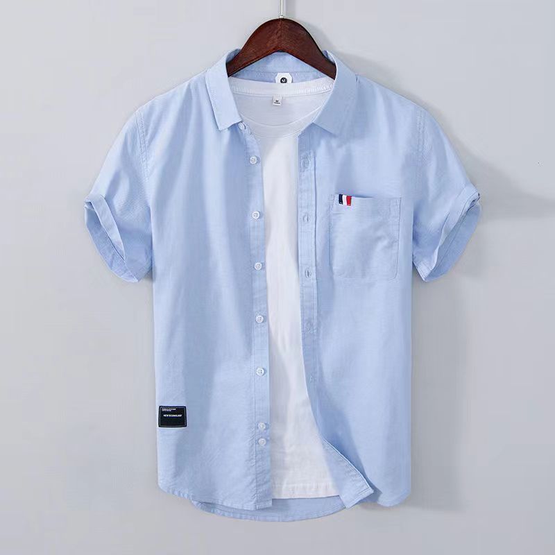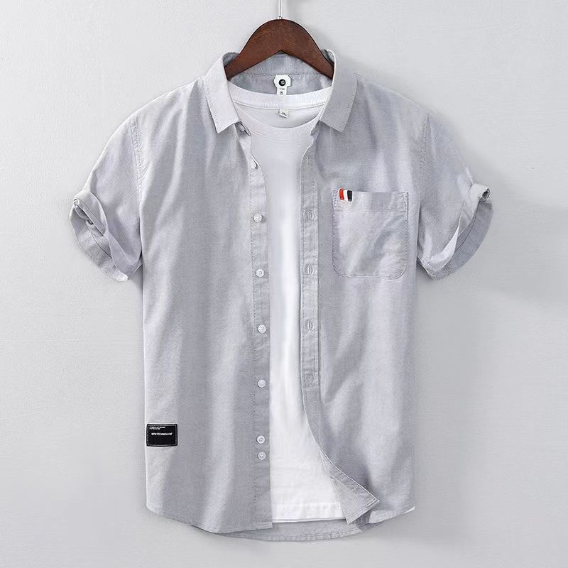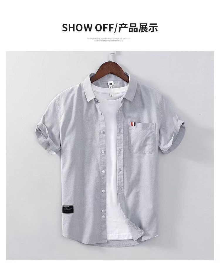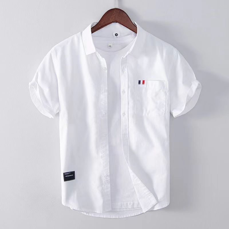 여름 반팔 셔츠 남자의 새로운 스타일 올 매치 화이트 캐주얼 스퀘어 칼라 레트로 간단한 편안한 남성용 셔츠 트렌디스토어 가기