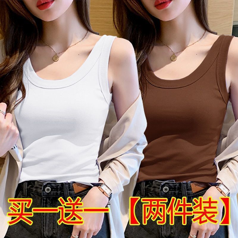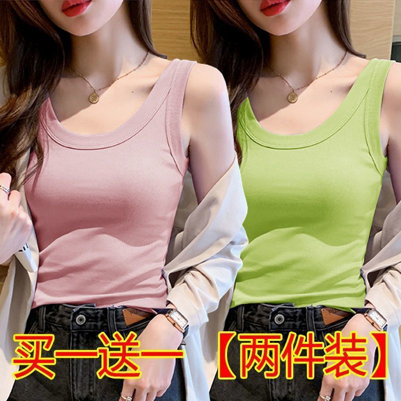 싱글/투피스 U-넥 아이스 실크 스레드 카미 솔 여성용 봄과 여름 아우터웨어 슬림 핏 올매치 민소매 티셔츠 로우 칼라 탑스토어 가기